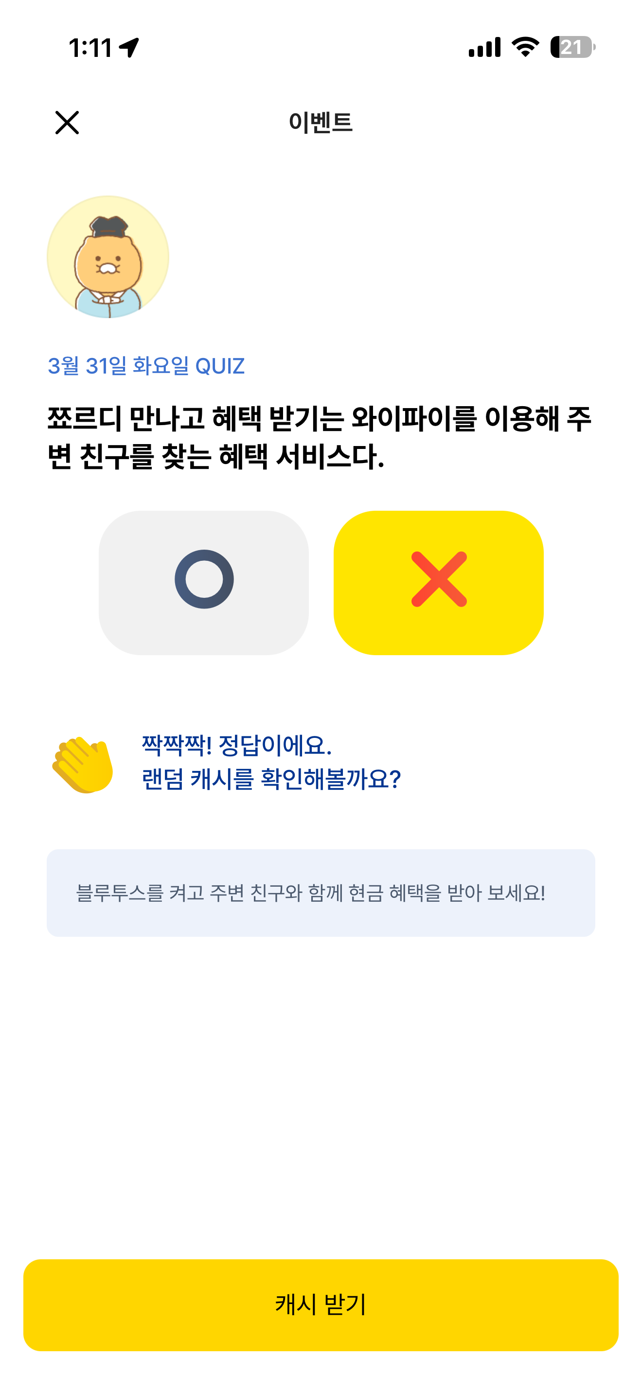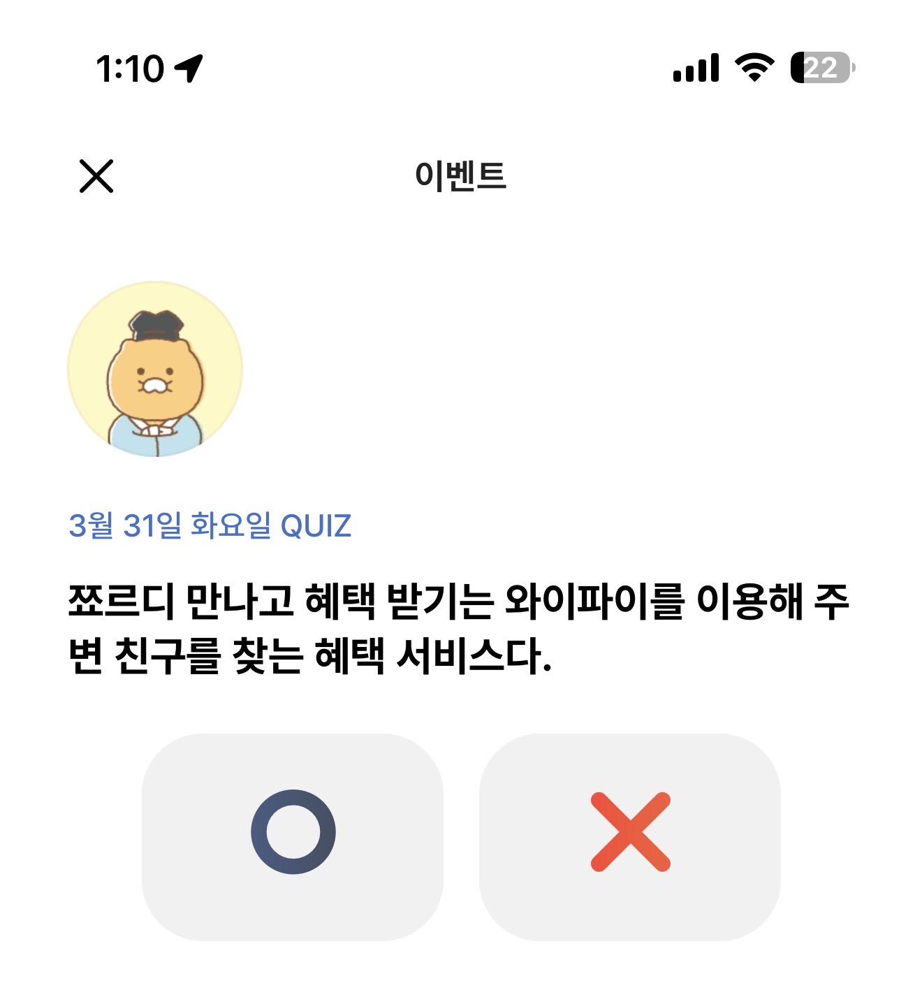 쬬르디 만나고 혜택 받기는 와이파이를 이용해 주변 친구를 찾는 혜택 서비스다 O, X 퀴즈인데요. 쬬르디 만나고 혜택 받기를 이용해 다양한 혜택을 받을 수 있으니 참고해 두세요