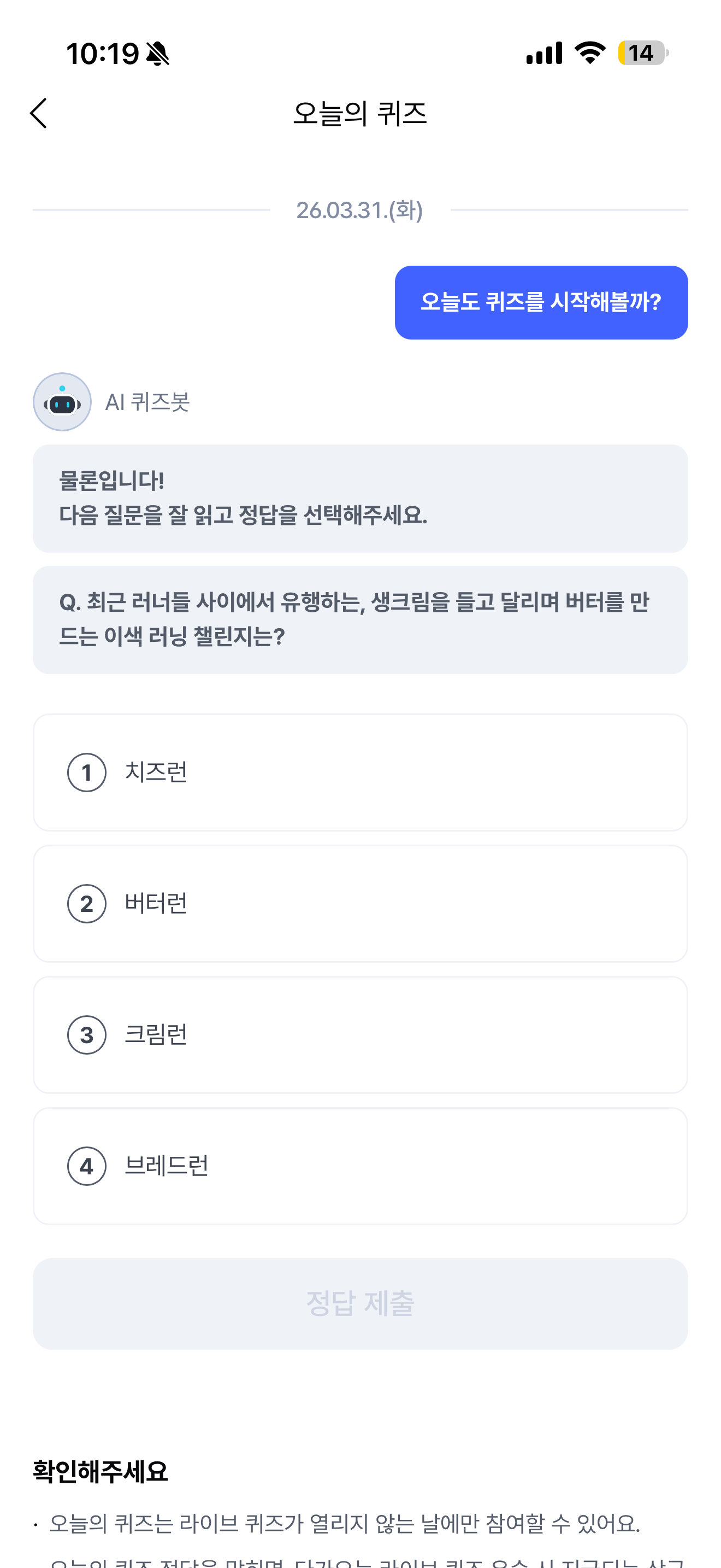 케이뱅크 AI 퀴즈 챌린지 정답은 버터런 입니다