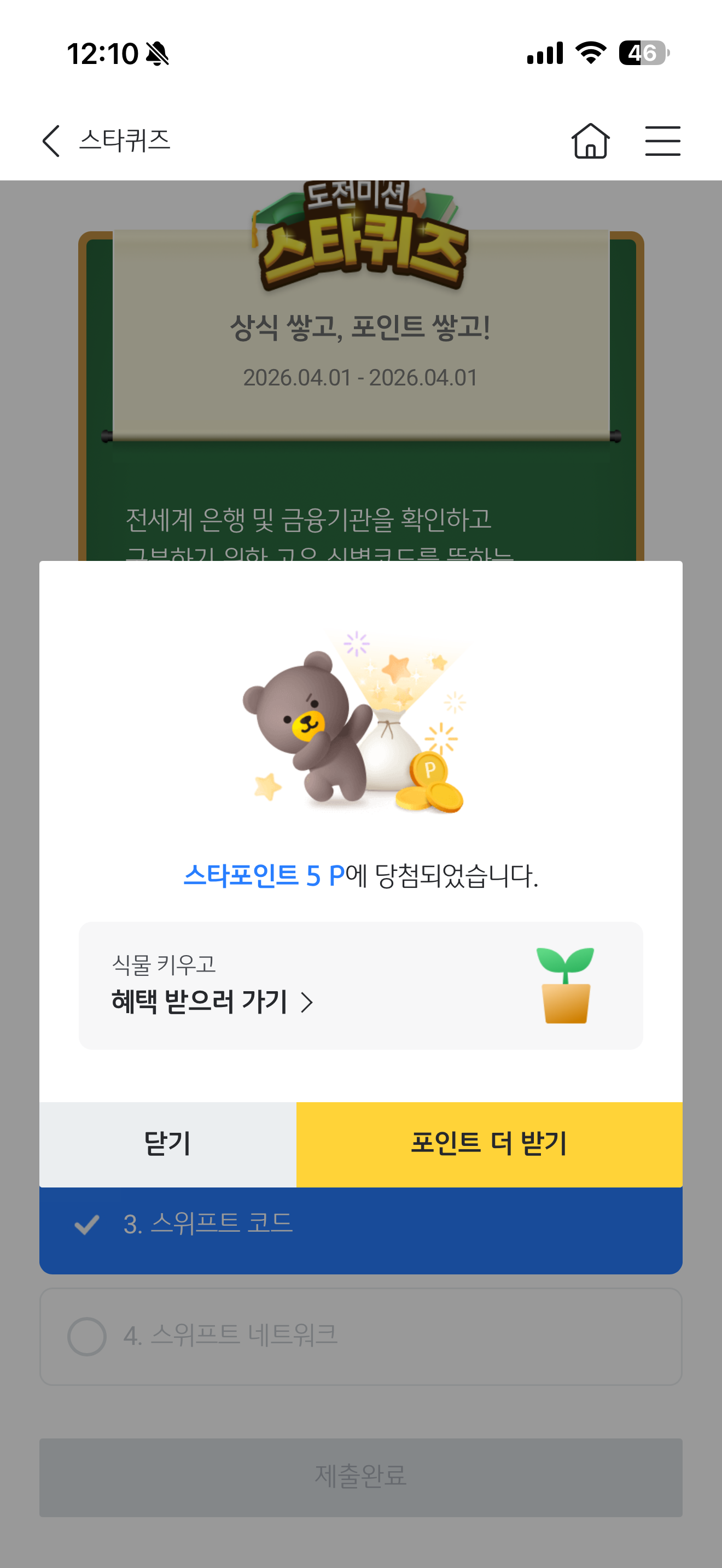 KB스타뱅킹 스타퀴즈 4월 1일 정답(전세계 은행 및 금융기관을 확인하고 구분하기 위한 고유 식별코드를 뜻하는 용어는 무엇일까요?)