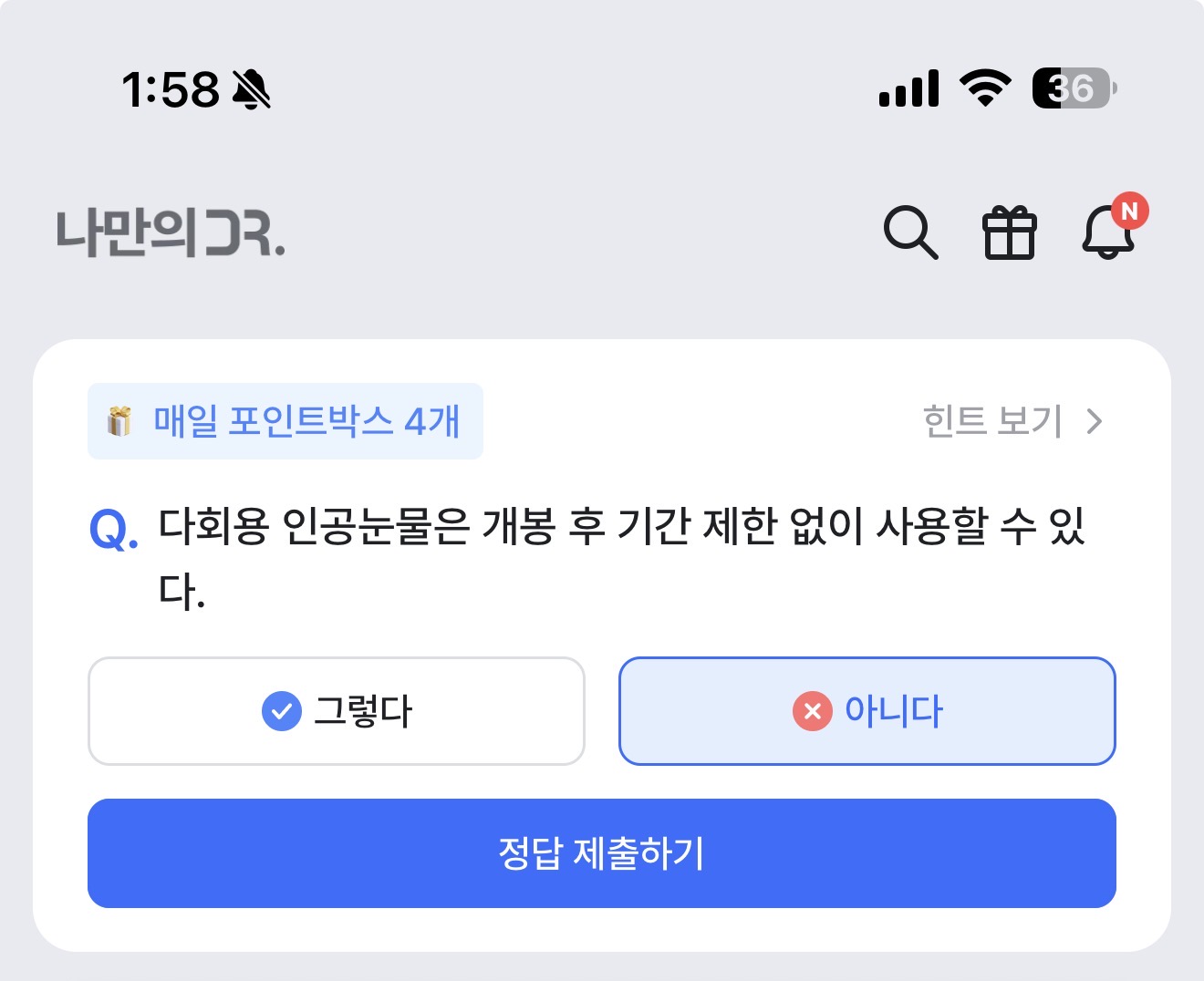다회용 인공눈물은 개봉 후 기간 제한 없이 사용할 수 있다. 그렇다 아니다 선택하면 되는데요. 다회용 인공눈물은 여러번 사용할 수 있다는 것인데요. 과연 제한 없이 사용할 수 있을까요?