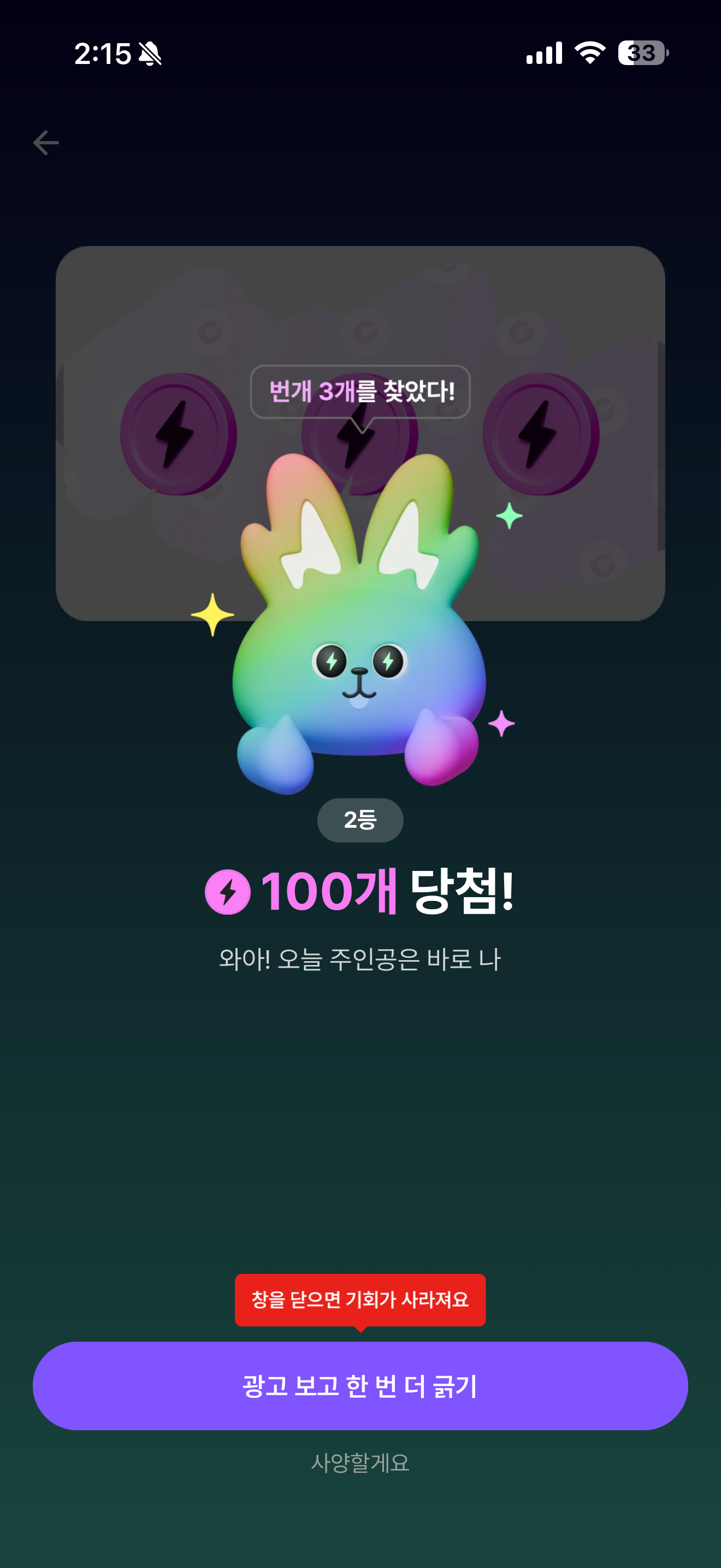 번개는 기프티콘 전환 가능하니 꼭 받으세요