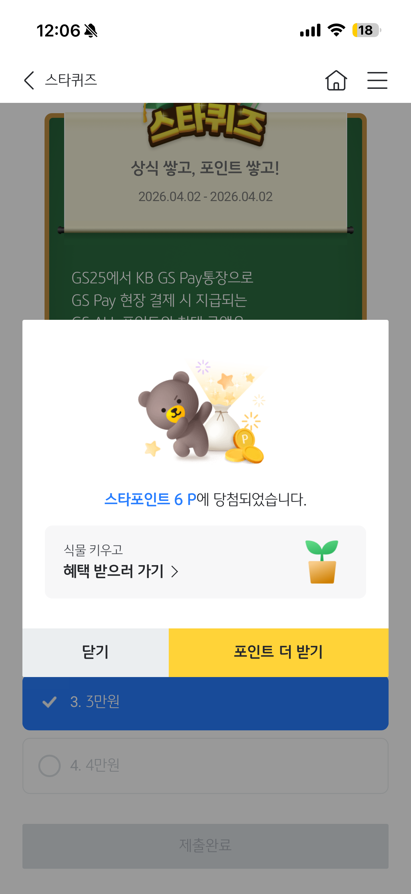 KB스타뱅킹 스타퀴즈 정답은 3만원 입니다