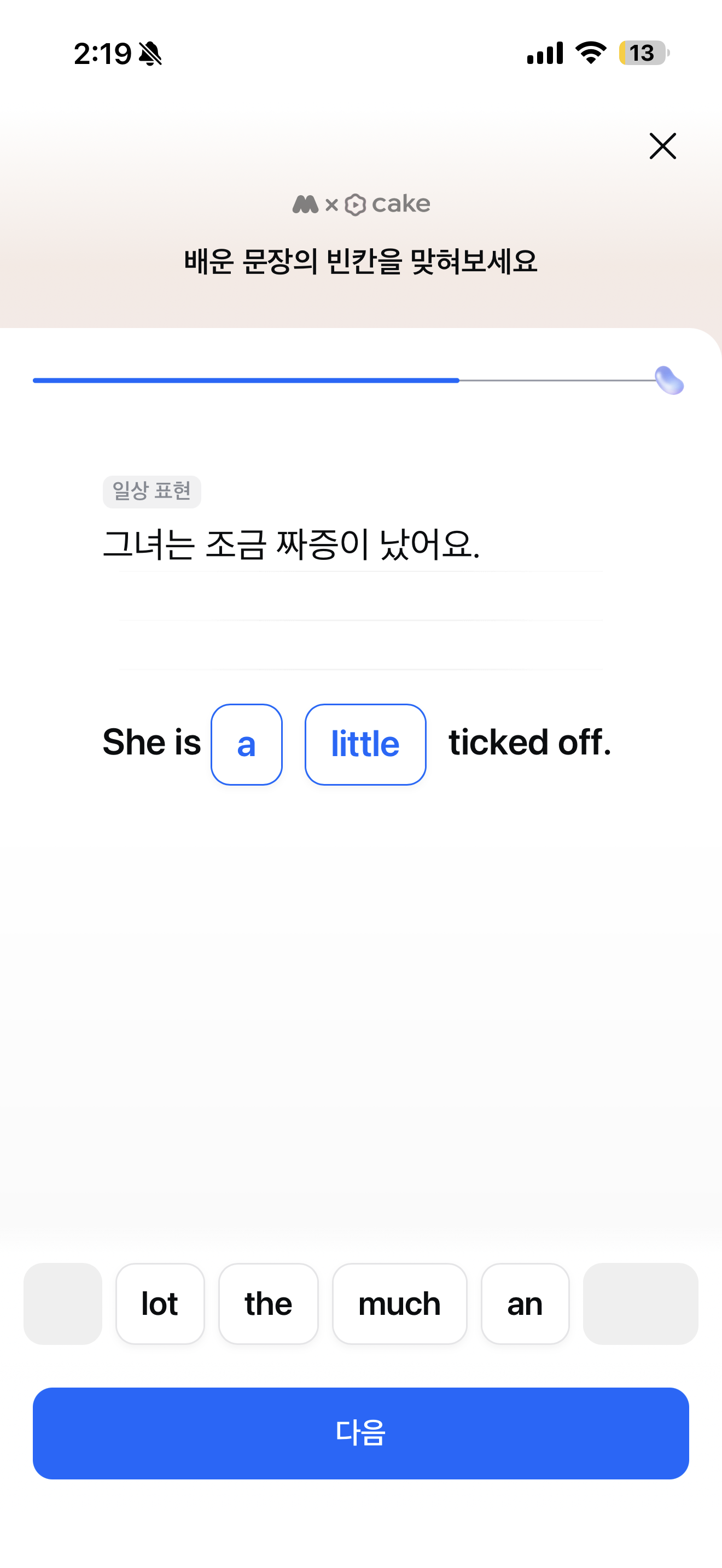 그녀는 조금 짜증이 났어요. She is a little ticked off