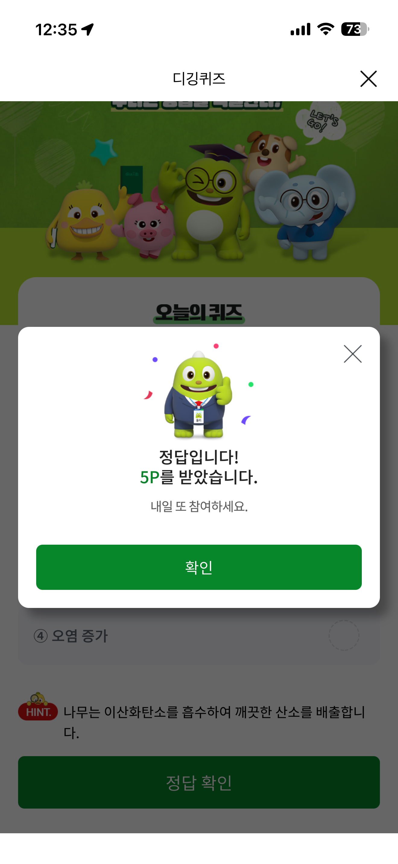 NH올원뱅크 디깅퀴즈 정답은 공기 정화 입니다