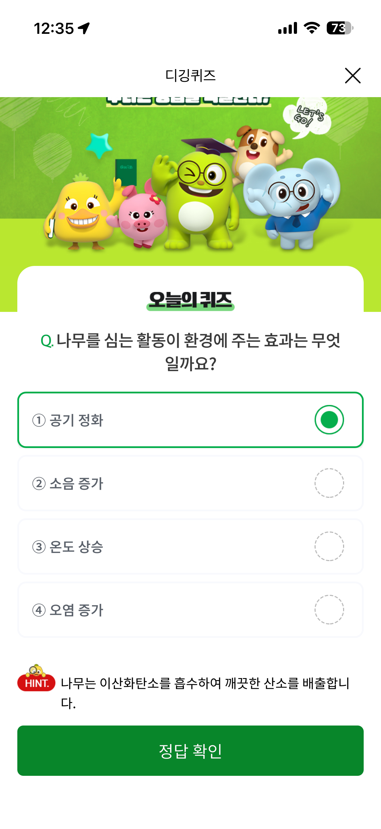 NH올원뱅크 디깅퀴즈 4월 3일 정답(나무를 심는 활동이 환경에 주는 효과는 무엇일까요?)