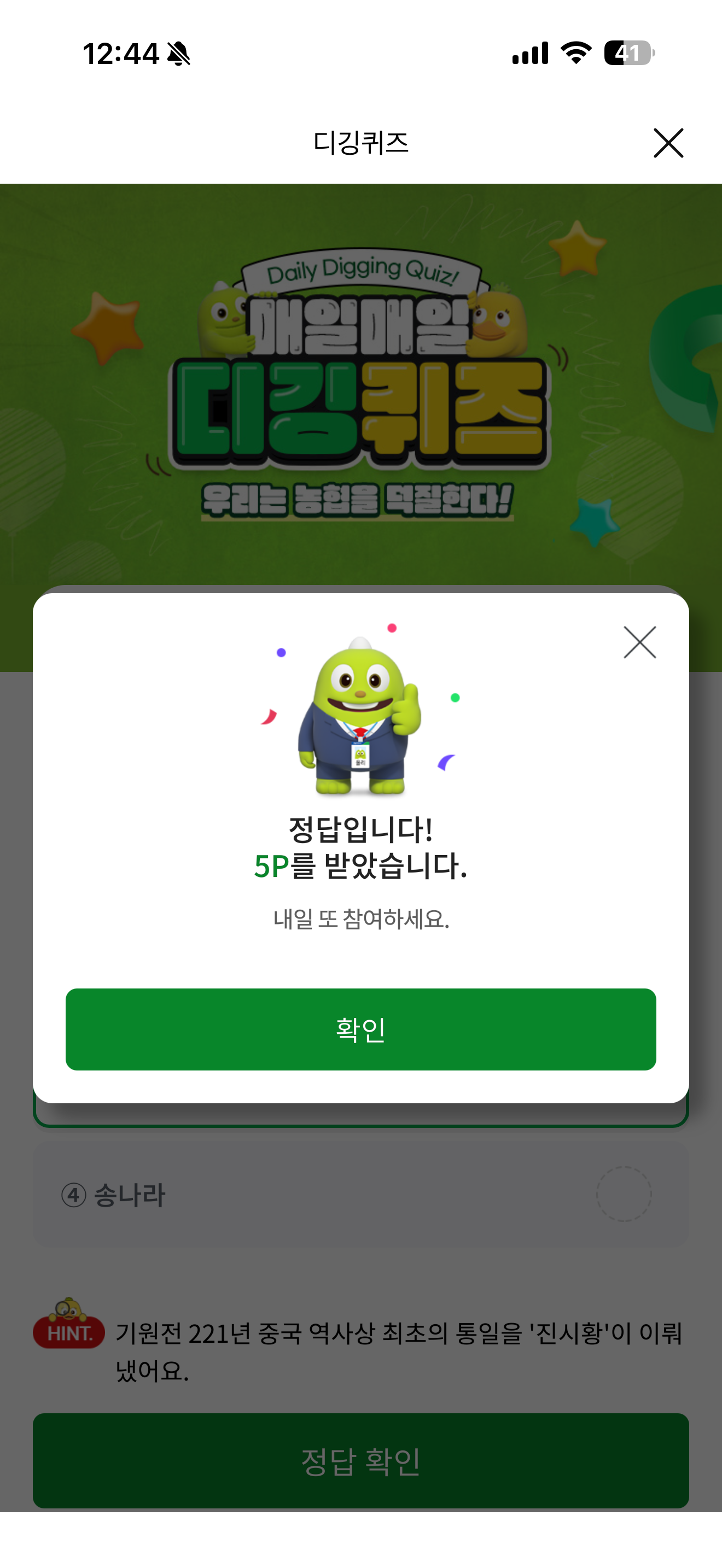 NH올원뱅크 디깅퀴즈 정답은 진나라 입니다