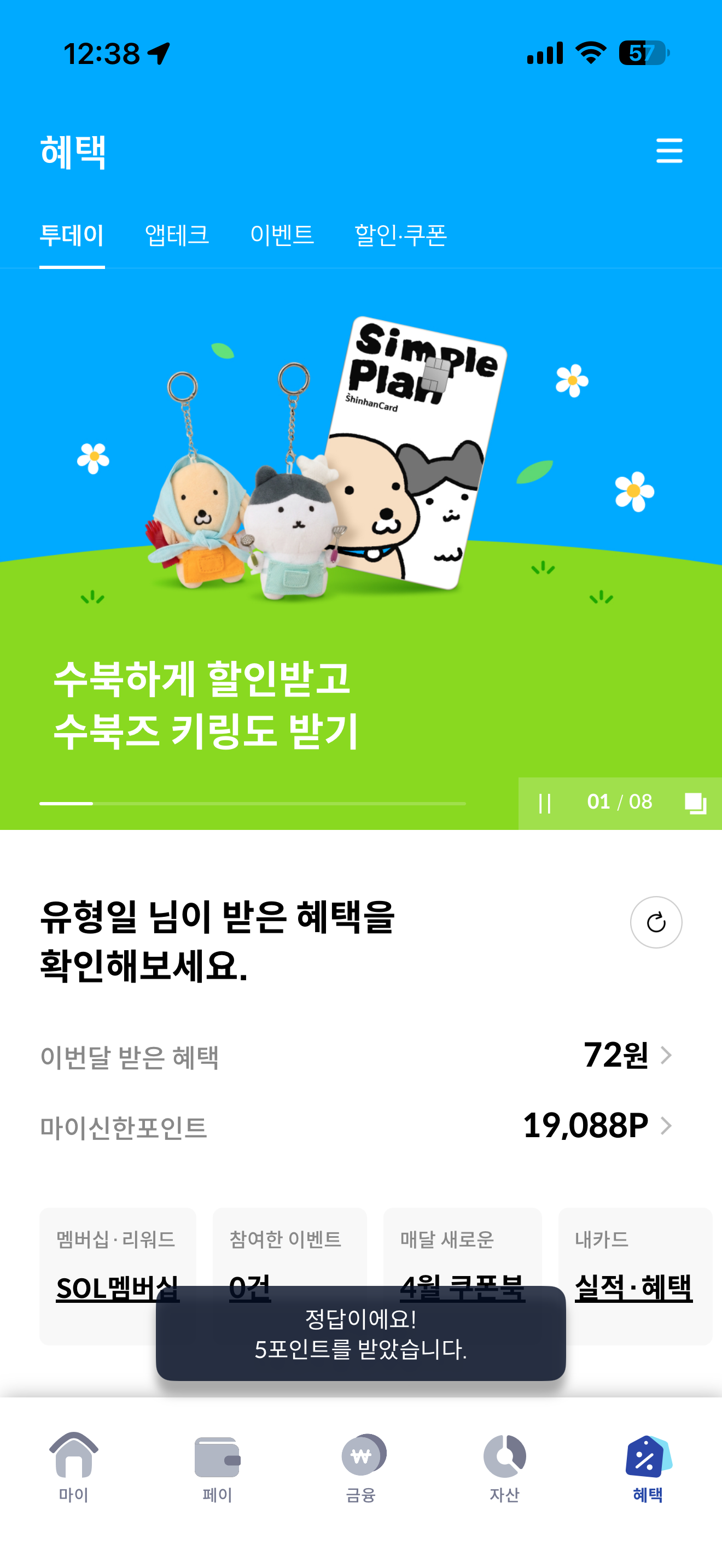 신한카드 퀴즈팡팡 4월 9일 문제입니다