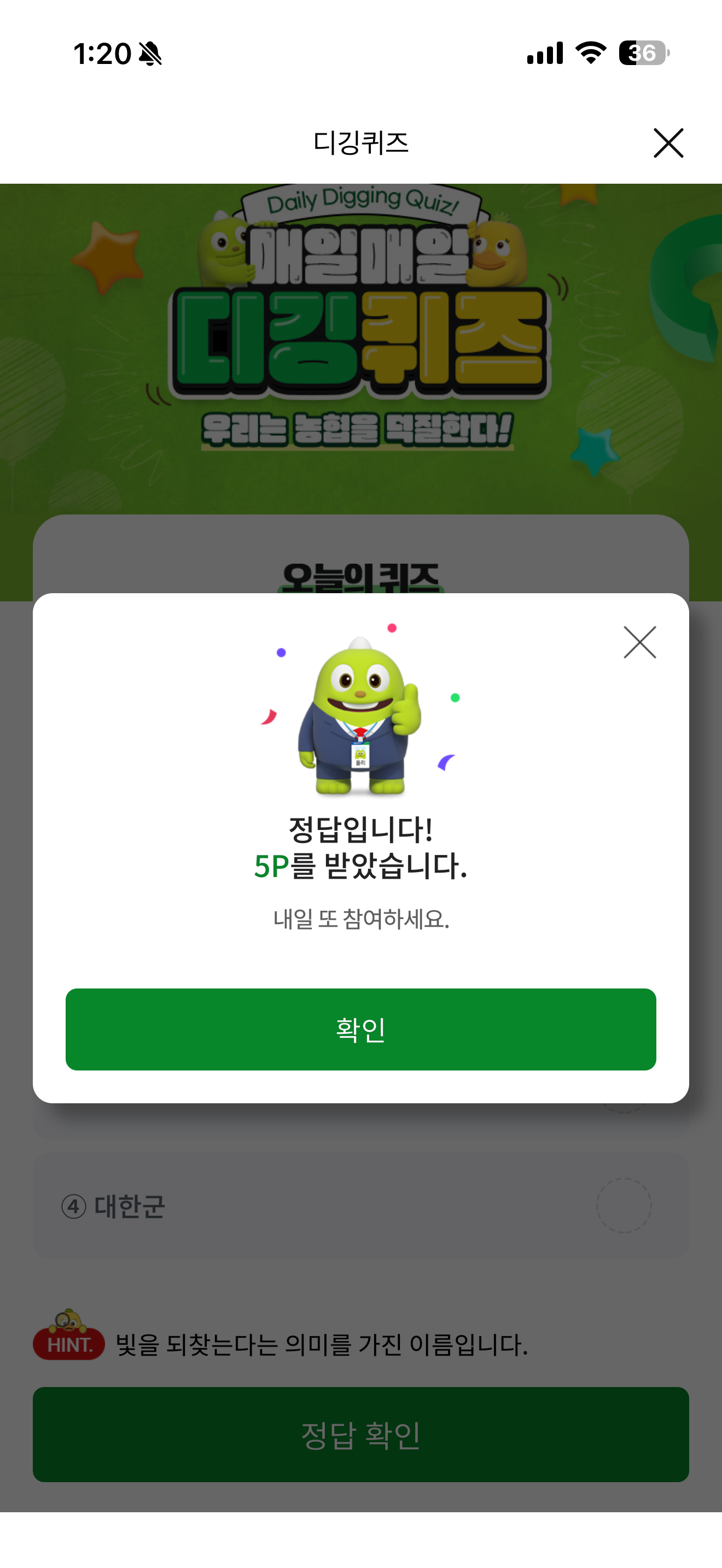 NH올원뱅크 디깅퀴즈 정답은 광복군 입니다