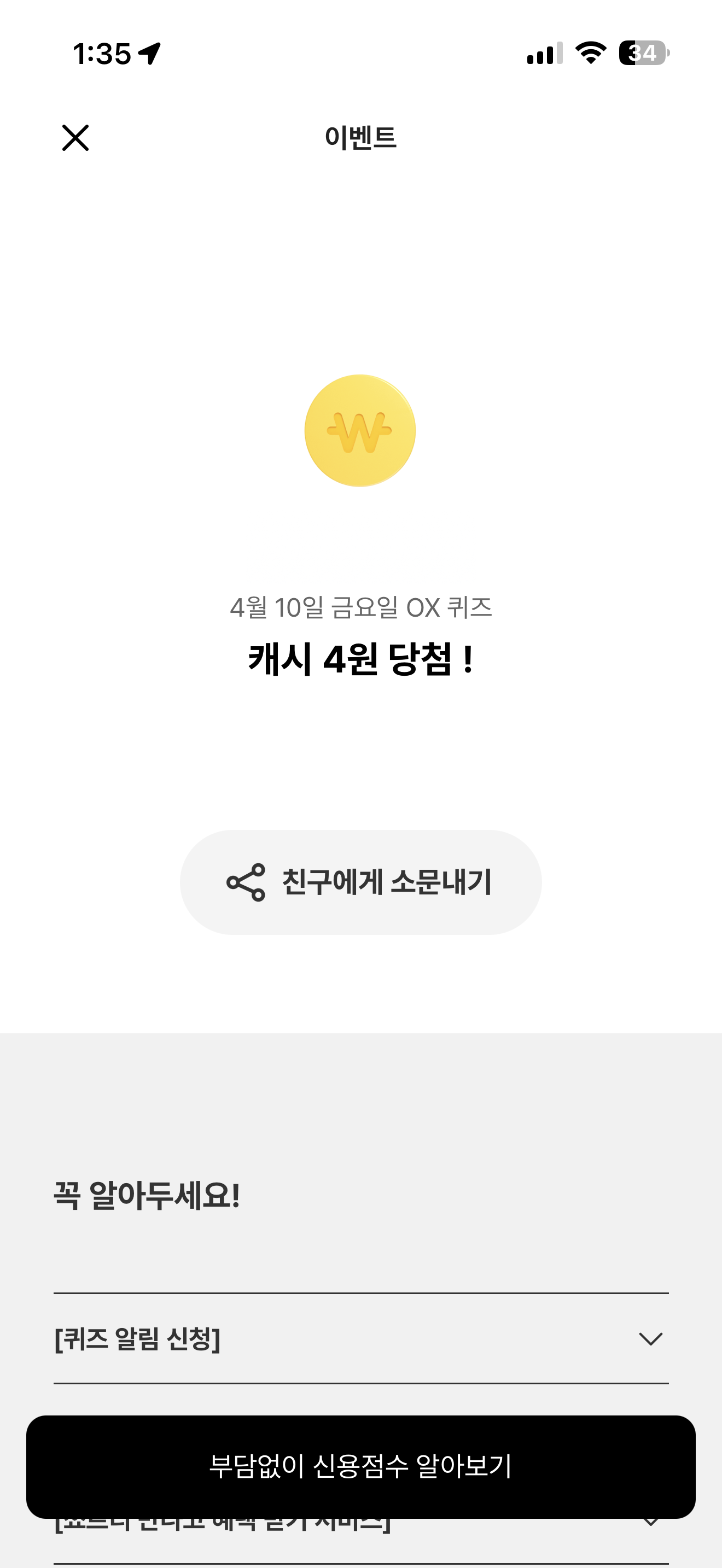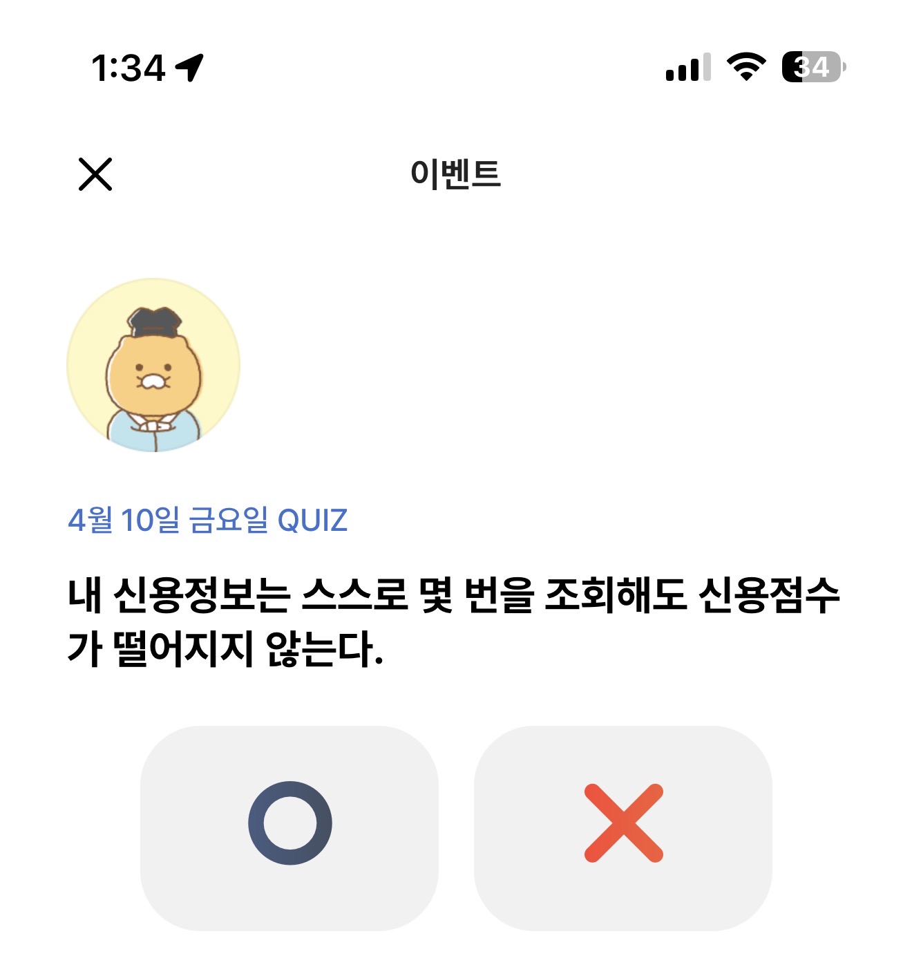카카오뱅크 OX 퀴즈 4월 10일 문제입니다