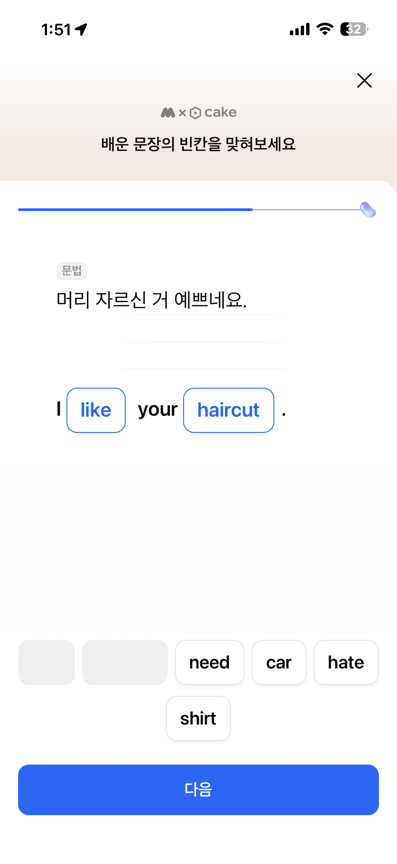 머리 자르신 거 예쁘네요. I like your haircut