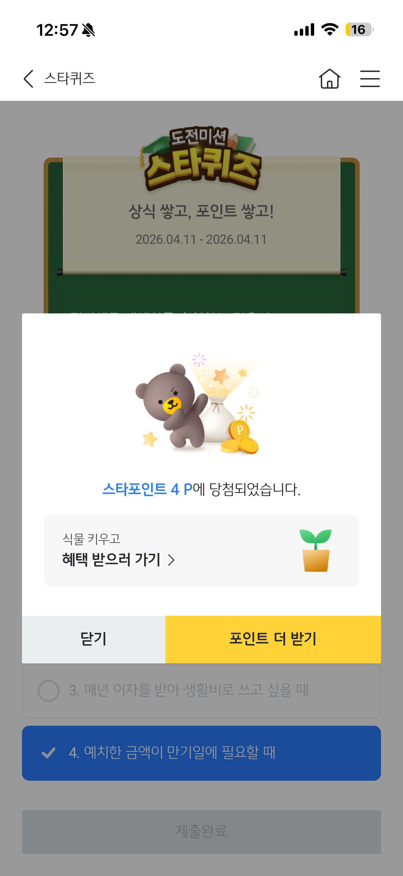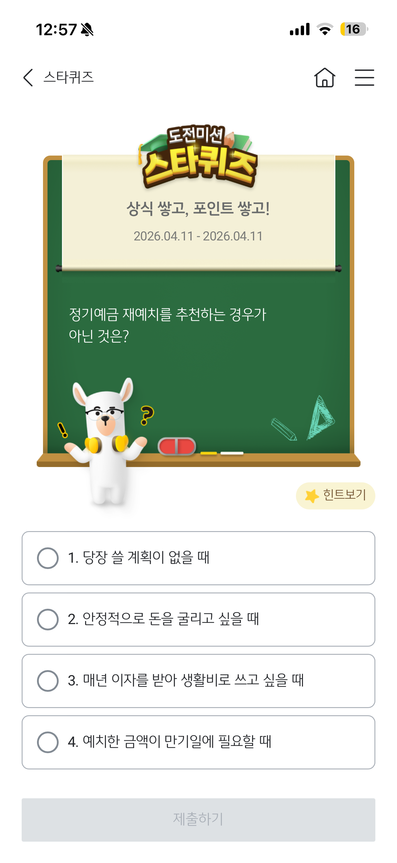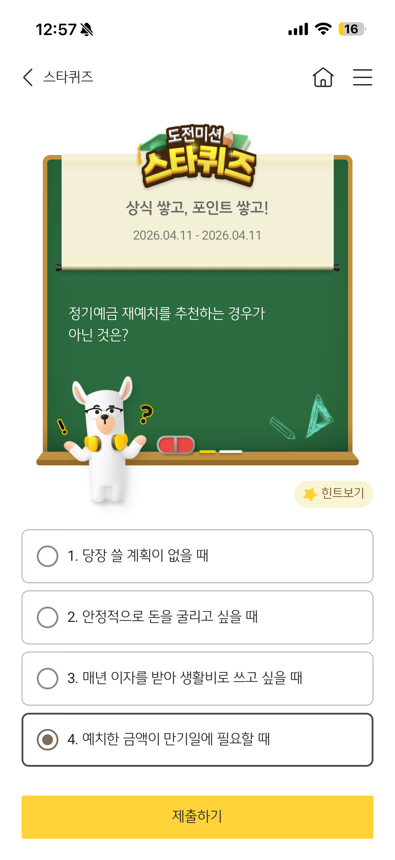 KB스타뱅킹 스타퀴즈 정답은 예치한 금액이 만기일에 필요할 때 입니다