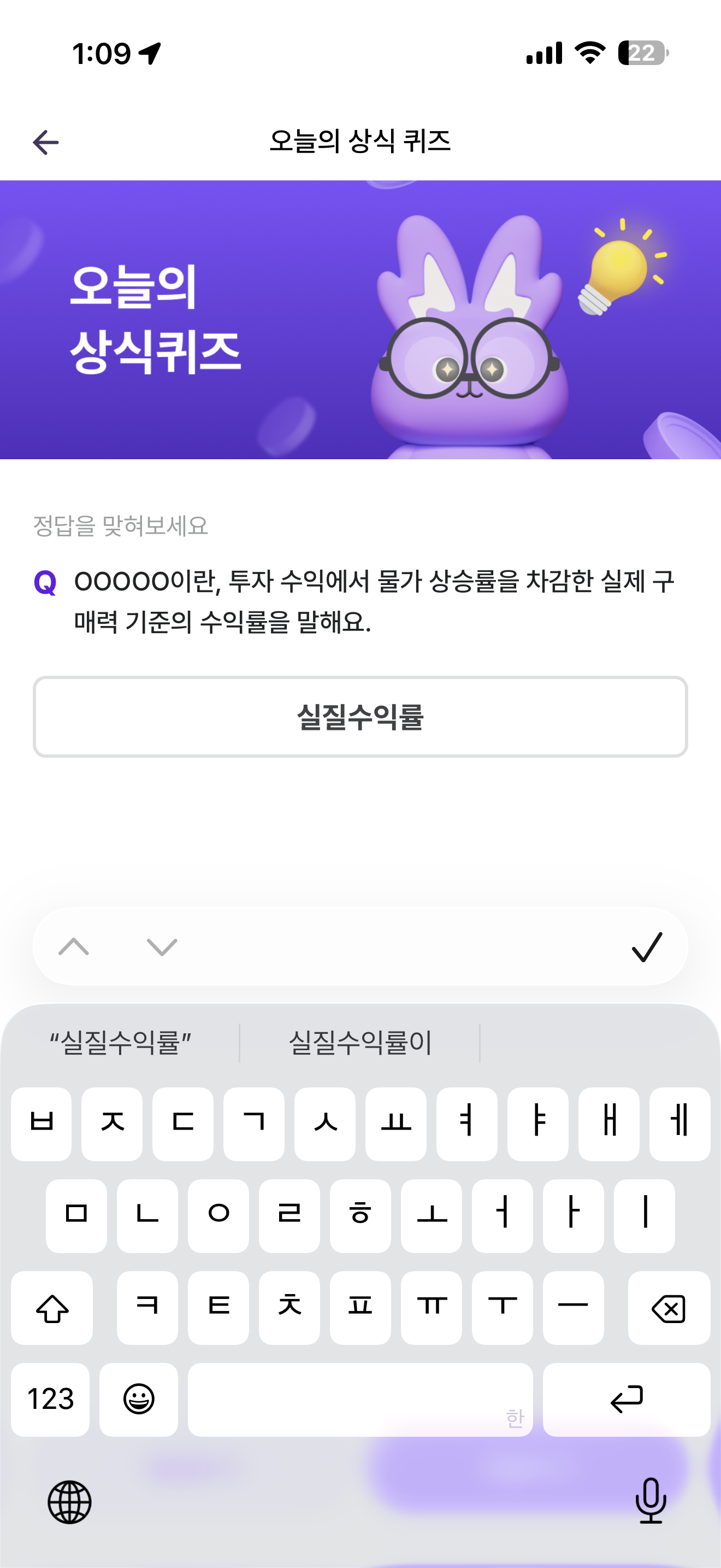 OOOOO이란, 투자 수익에서 물가 상승률을 차감한 실제 구매력 기준의 수익률을 말해요. 주관식 퀴즈인데요.