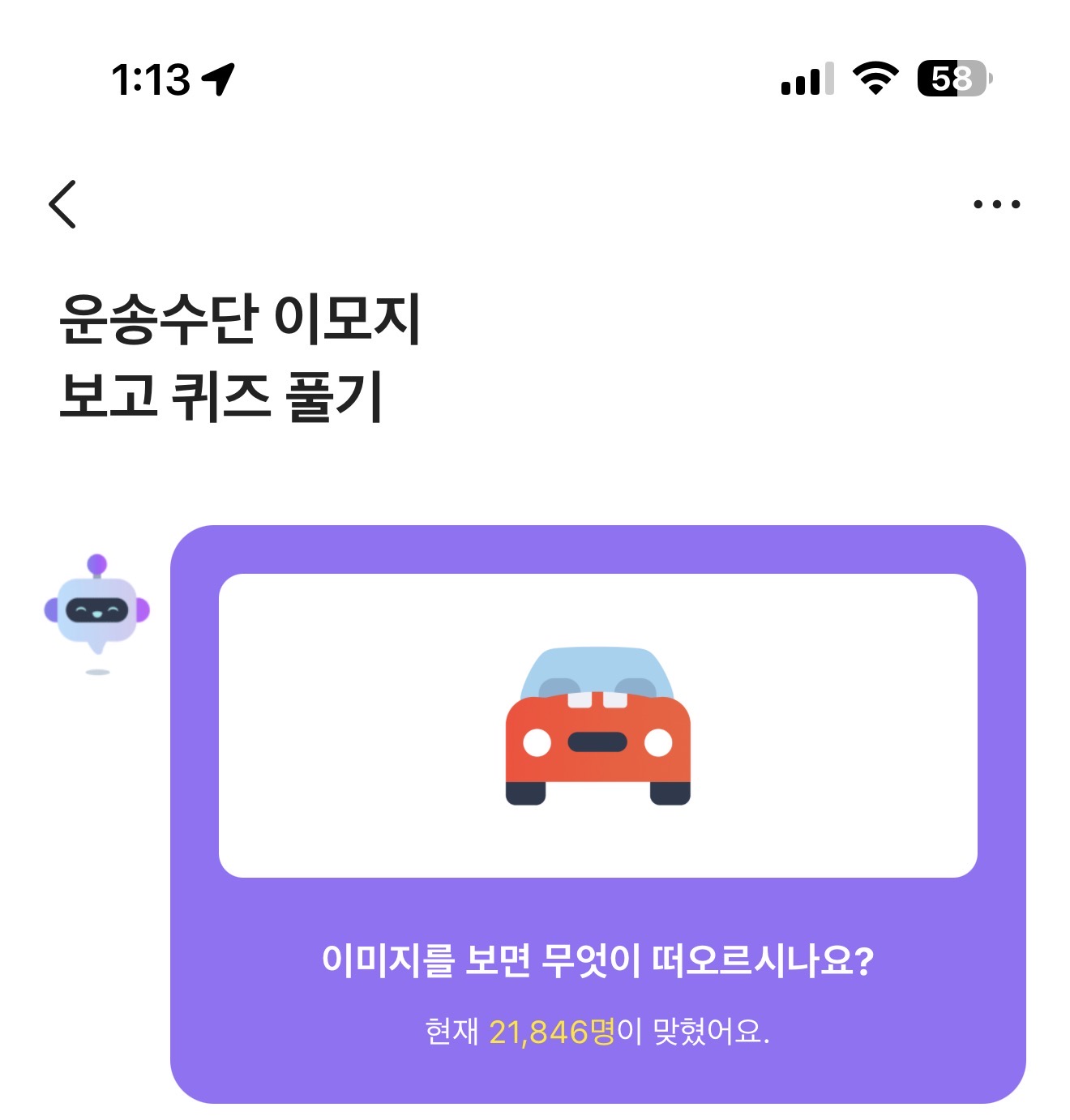 카카오뱅크 AI 운송수단 이모지 퀴즈 정답은 드라이브 입니다