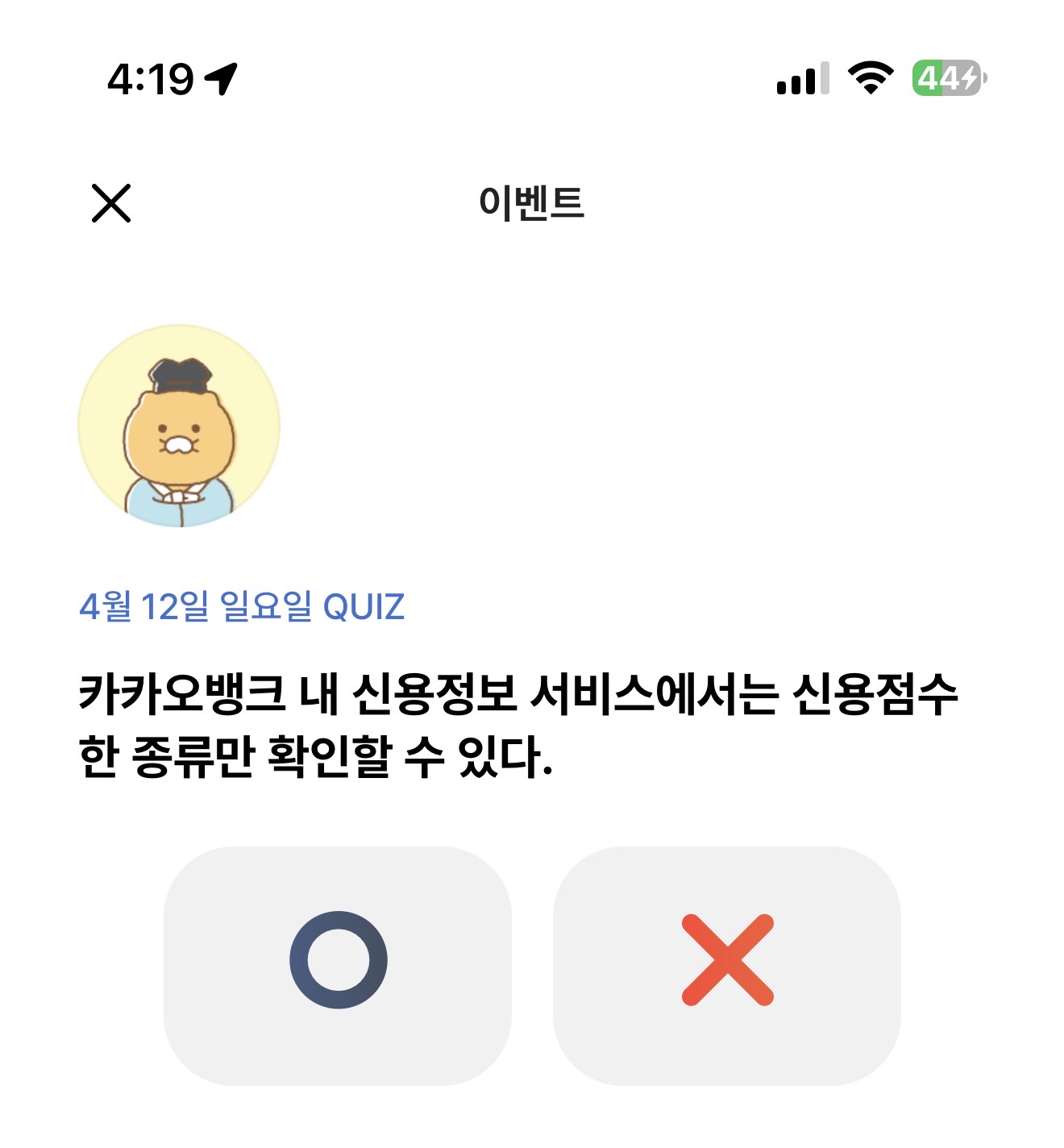 카카오뱅크 OX 퀴즈 4월 12일 문제입니다