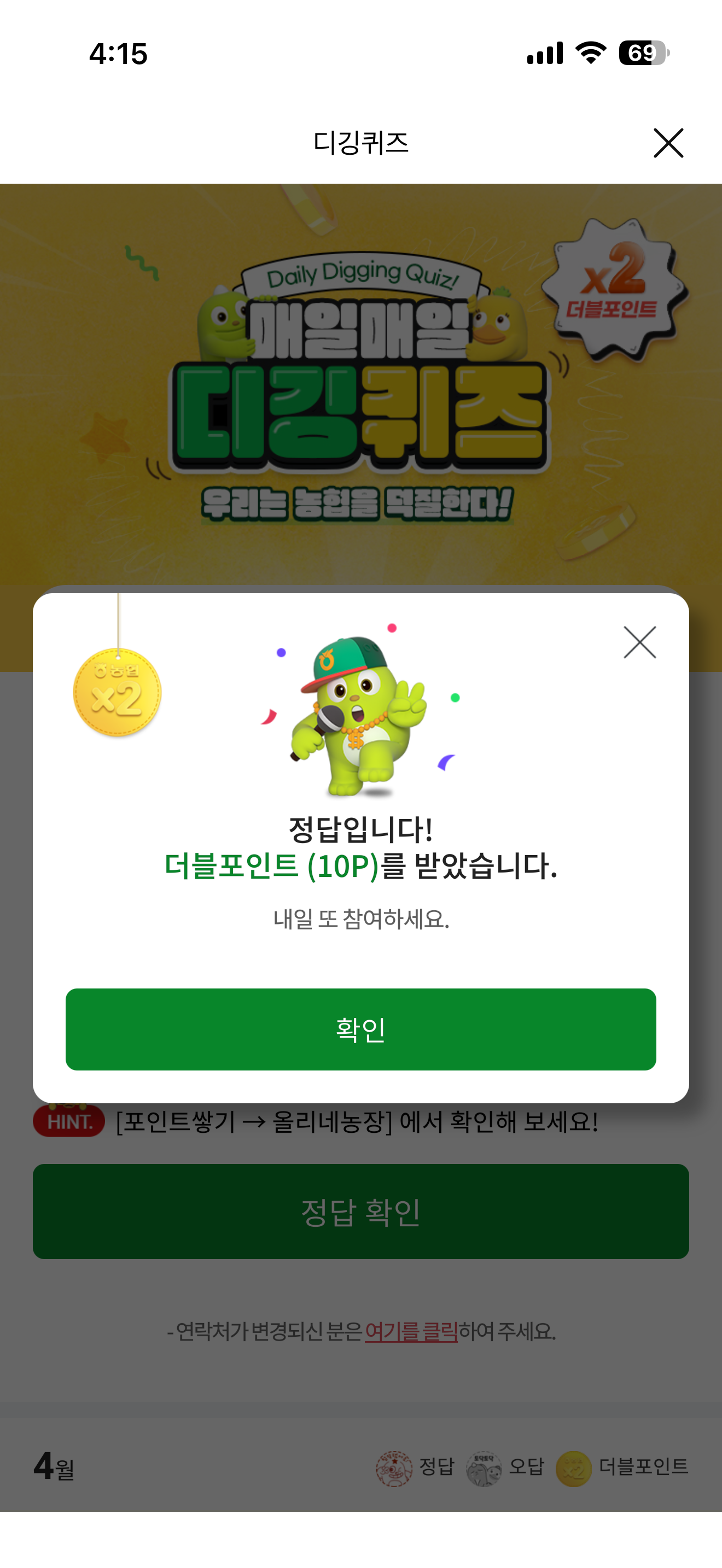 NH올원뱅크 디깅퀴즈 4월 15일 문제입니다