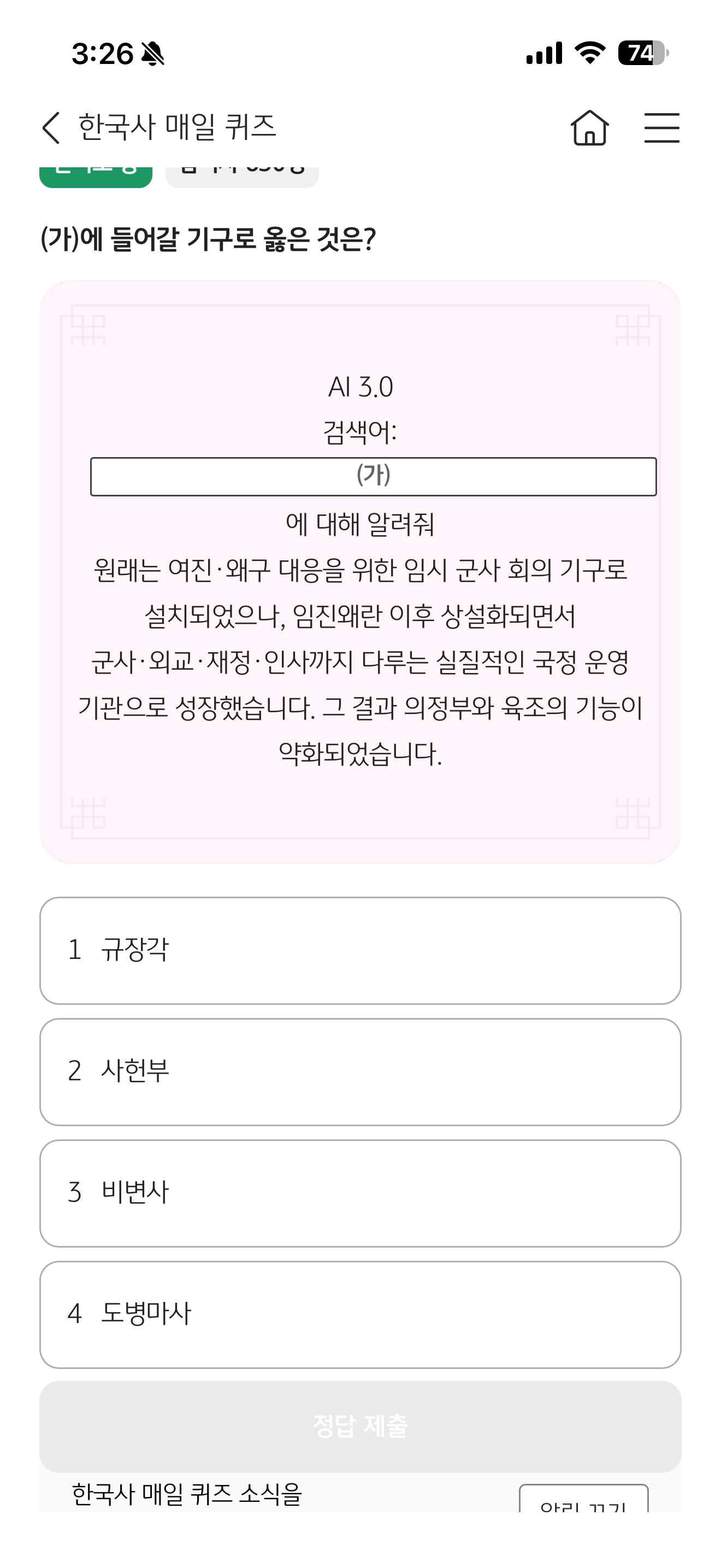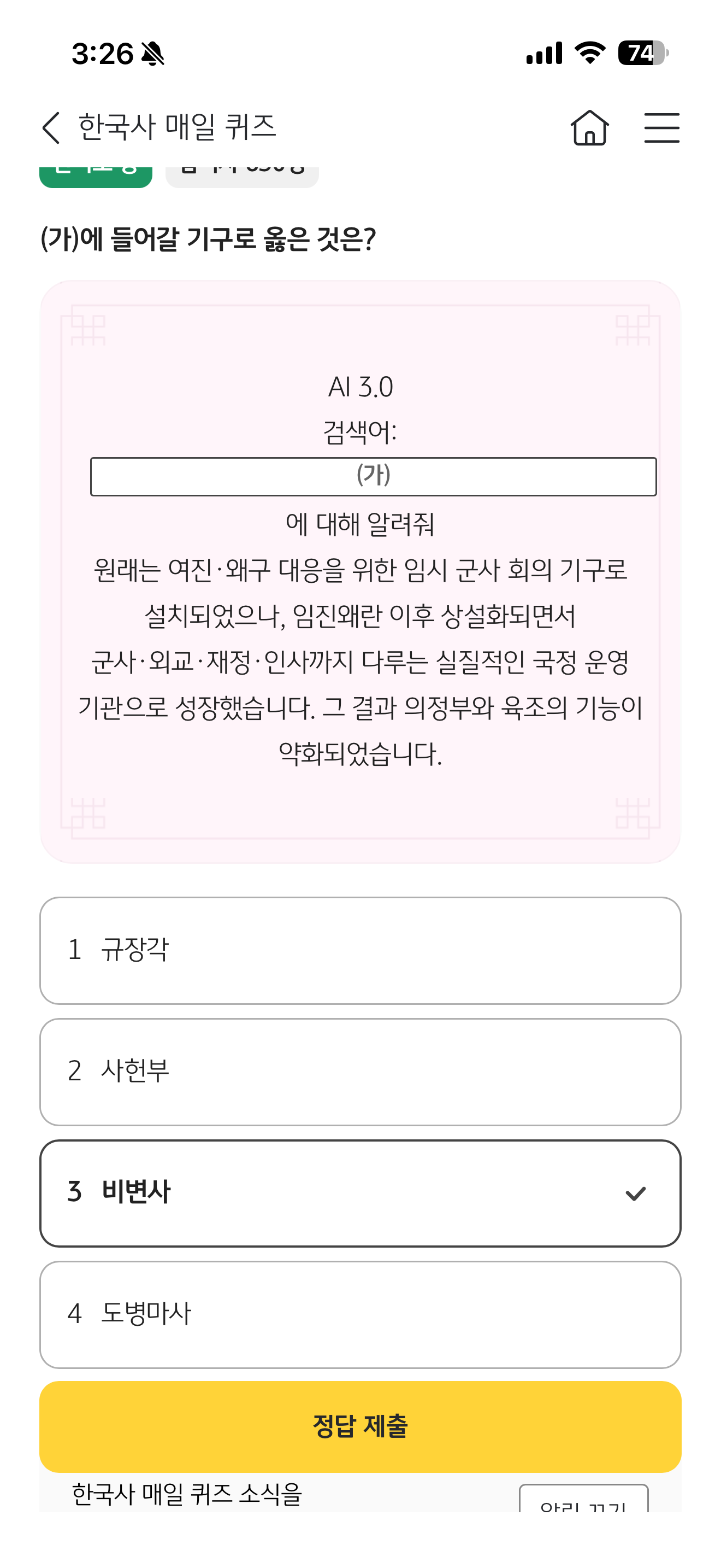 KB스타뱅킹 한국사 매일 퀴즈 정답은 비변사 입니다