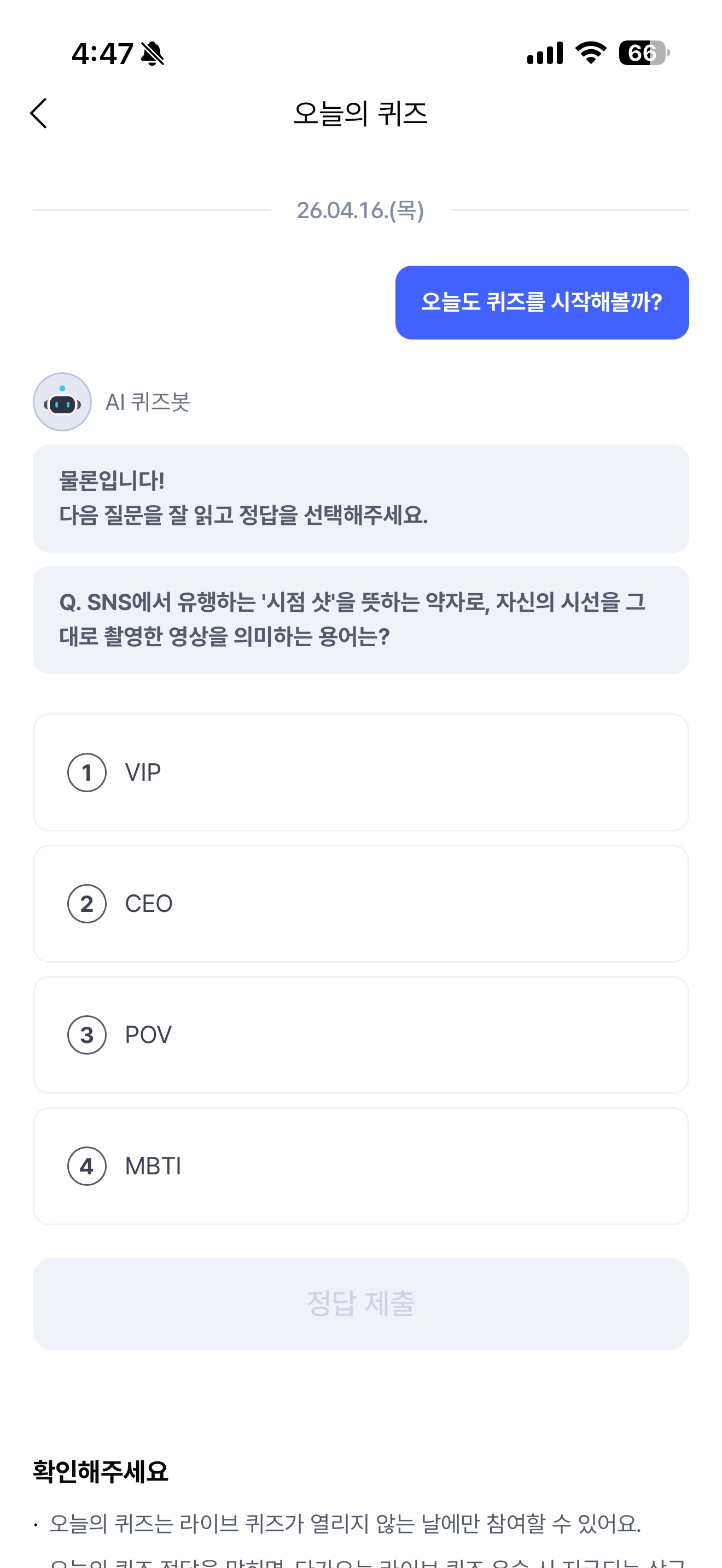 케이뱅크 AI 퀴즈 챌린지 정답은 POV 입니다