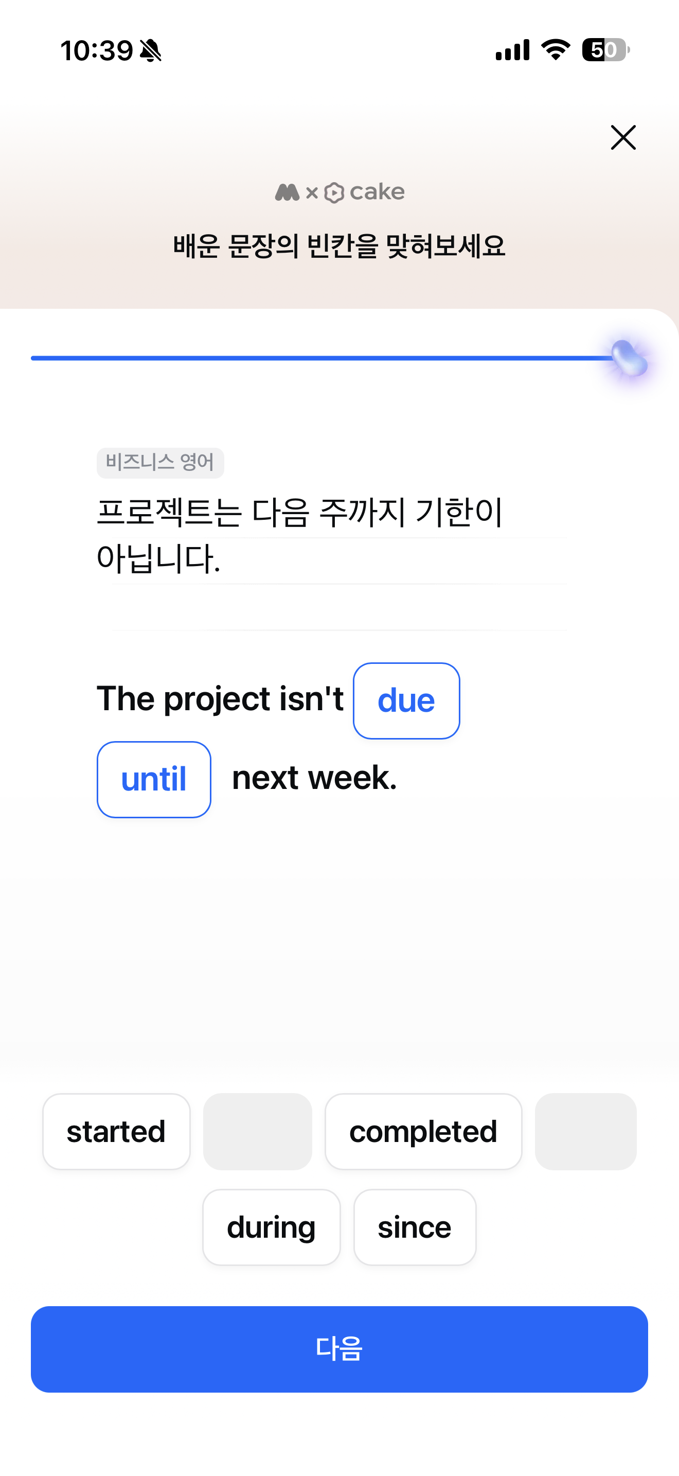 프로젝트는 다음 주까지 기한이 아닙니다 The project isn't due until next week