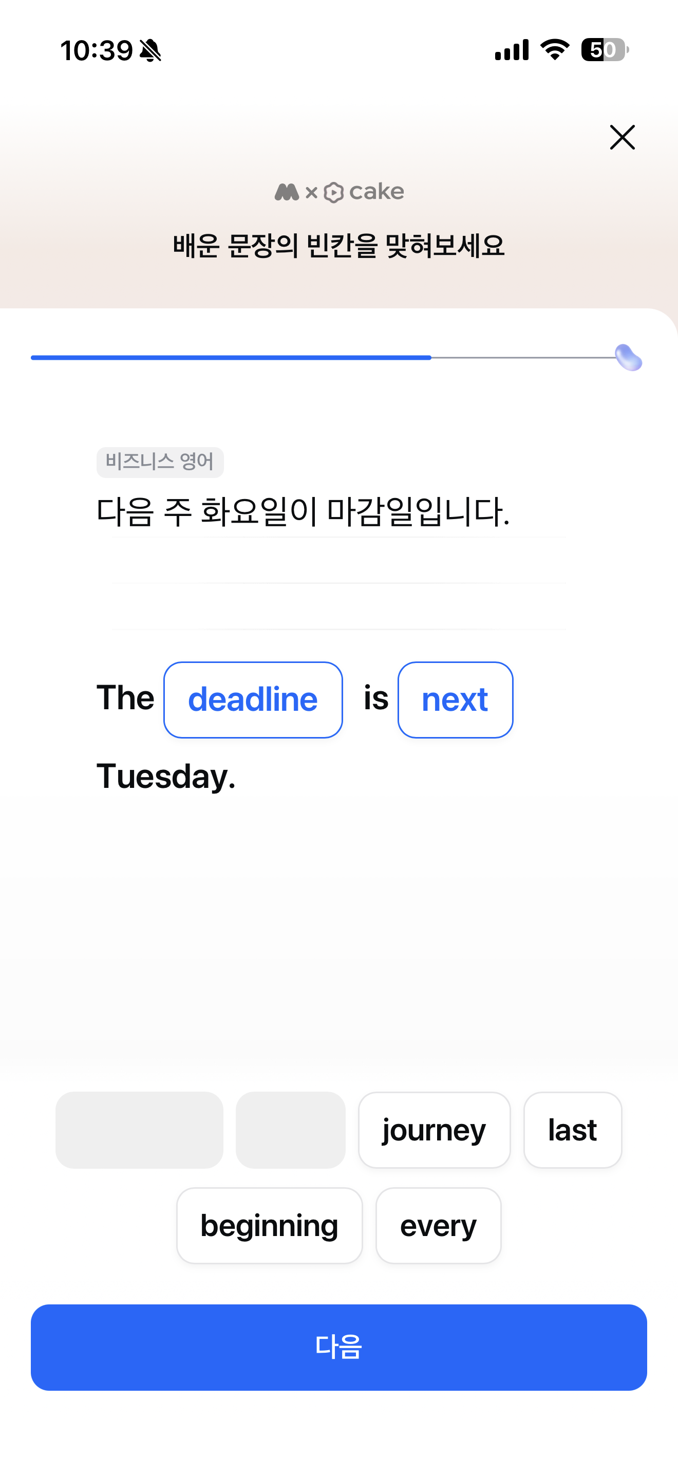 다음 주 화요일이 마감일입니다 The deadline is next Tuesday