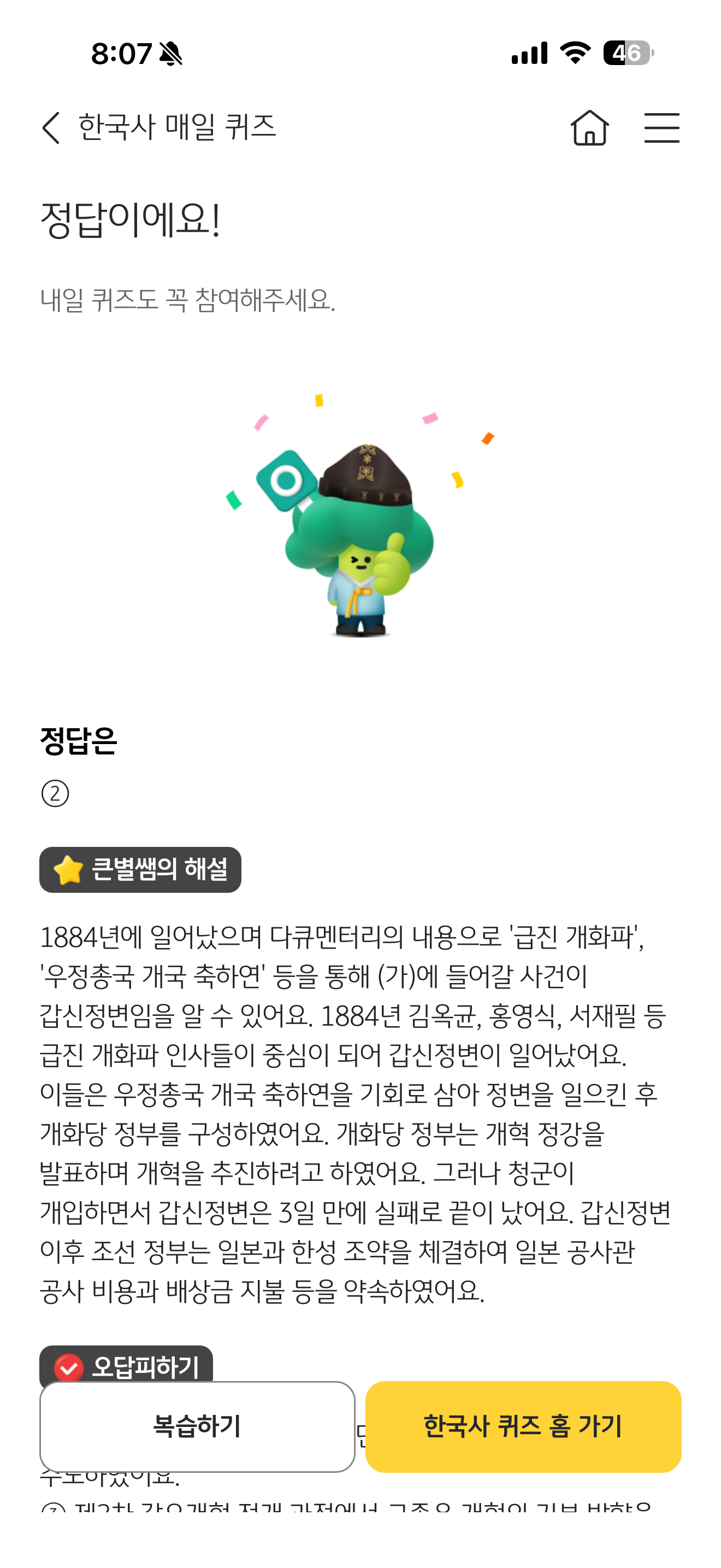 KB스타뱅킹 한국사 매일 퀴즈 정답은 한성 조약이 체결되는 결과를 가져왔다