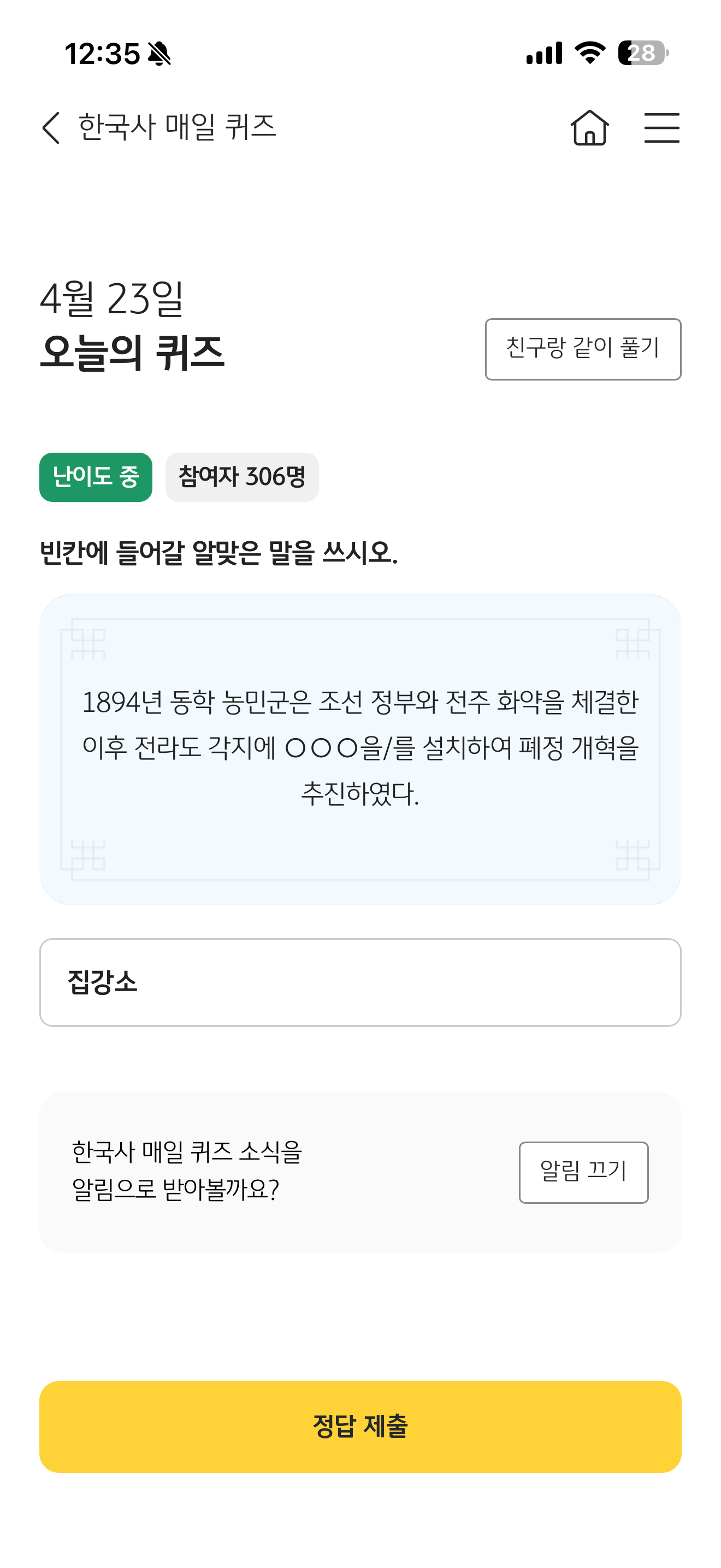 1894년 동학 농민군은 조선 정부와 전주 화약을 체결한 이후 전라도 각지에 OOO을/를 설치하여 폐정 개혁을 추진하였다. 주관식 퀴즈 인데요.