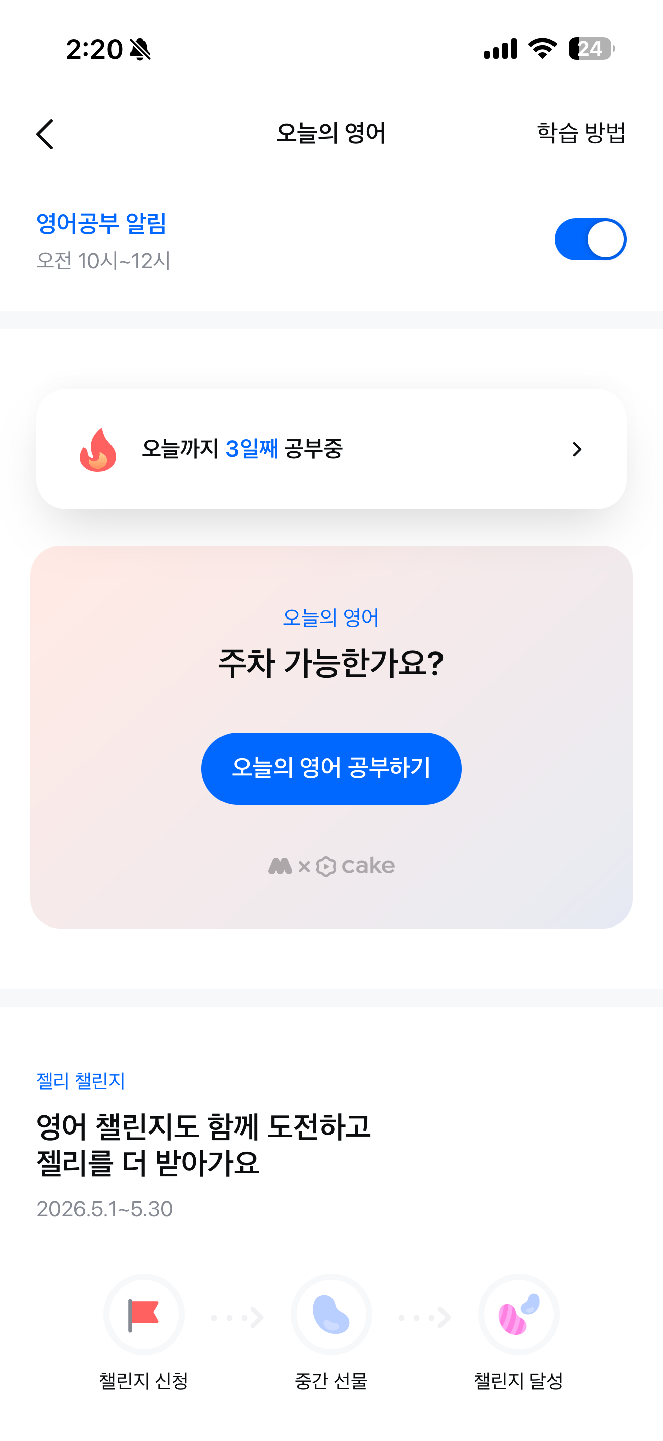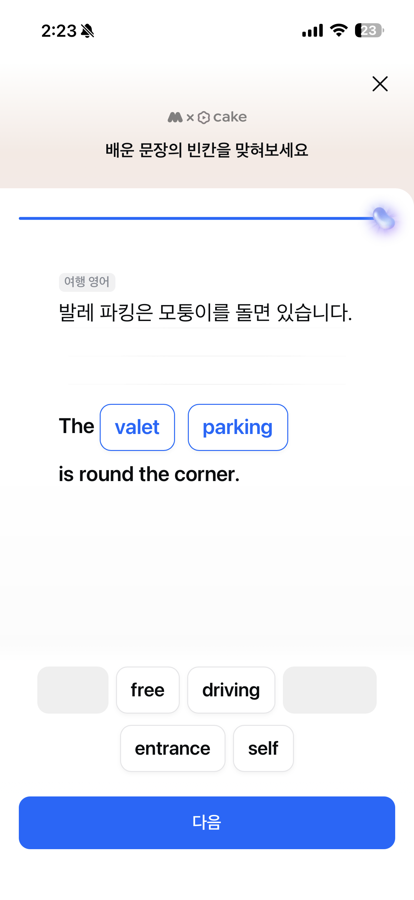 모니모 오늘의 영어 4월 23일 정답(주차 가능한가요? 주차 시설이 있나요? 발레 파킹은 모퉁이를 돌면 있습니다)