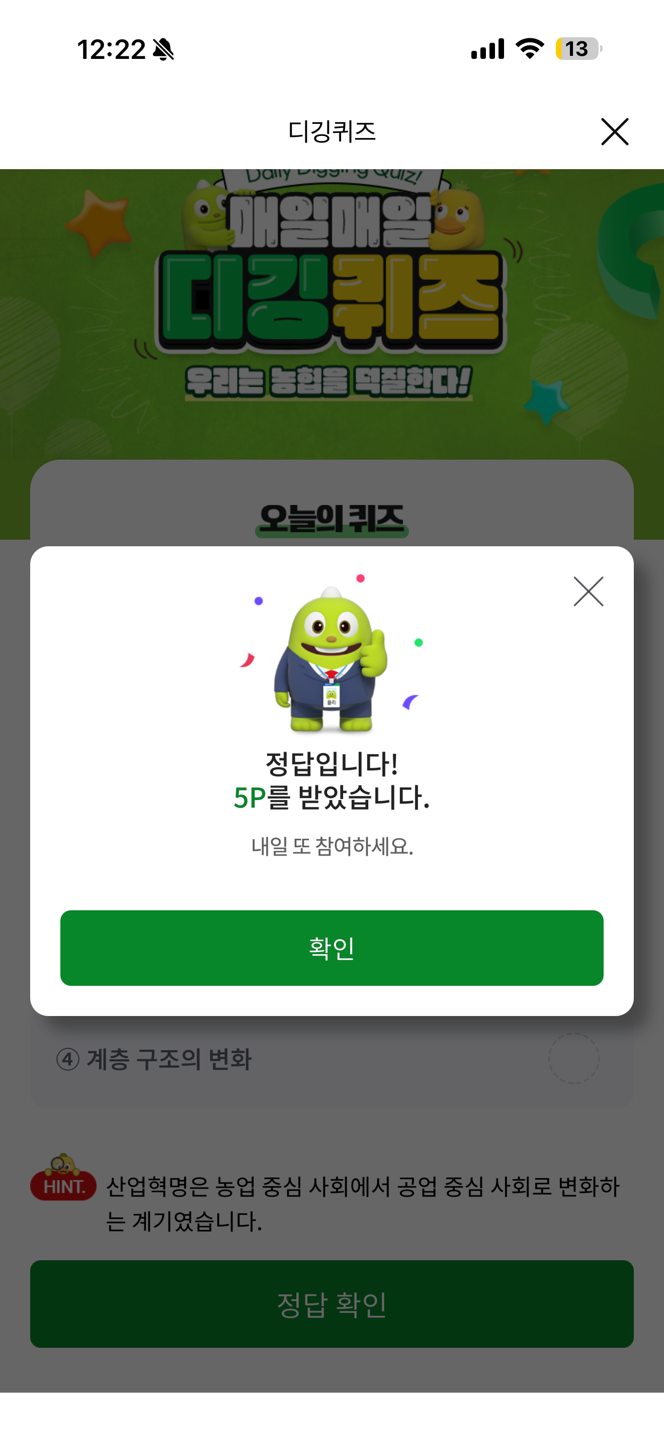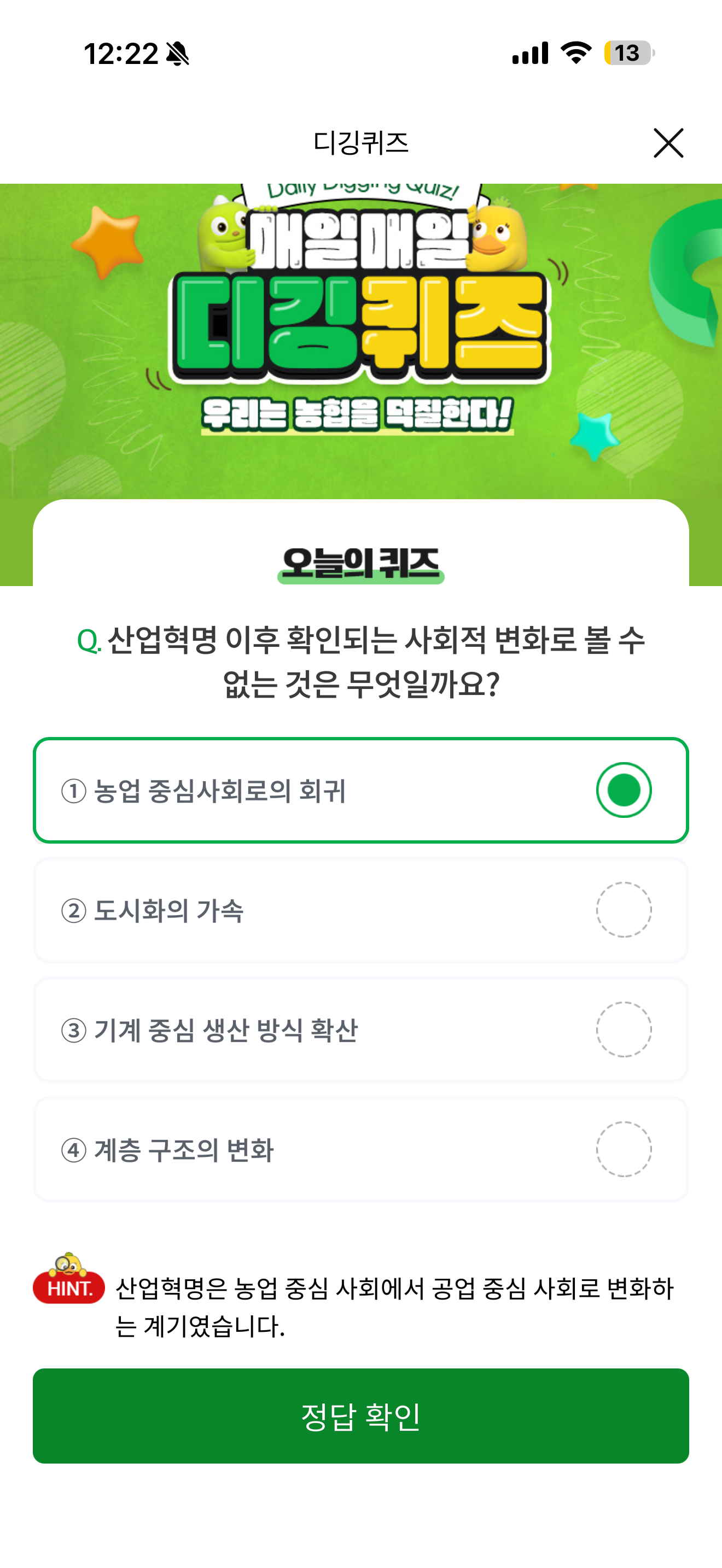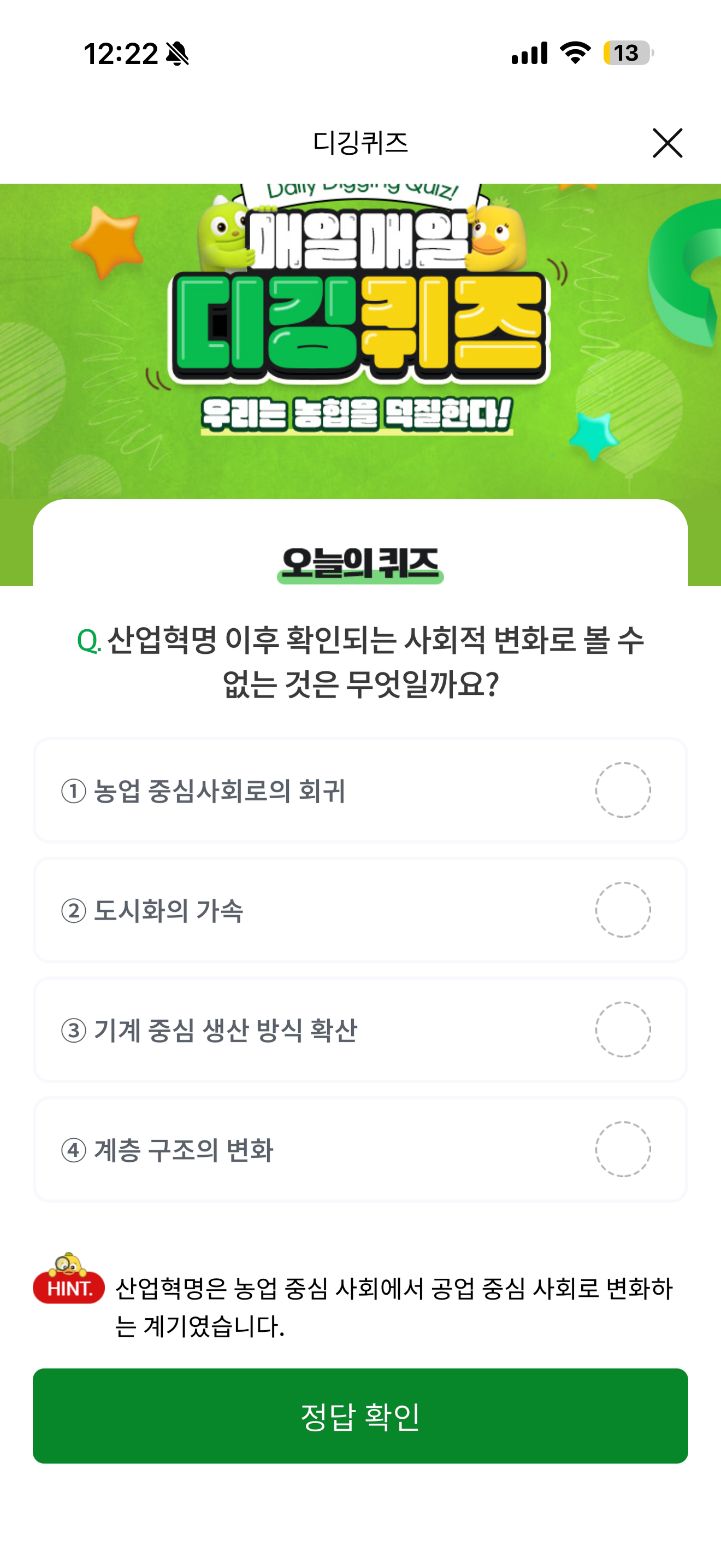 NH올원뱅크 디깅퀴즈 정답은 농업 중심사회로의 회귀 입니다