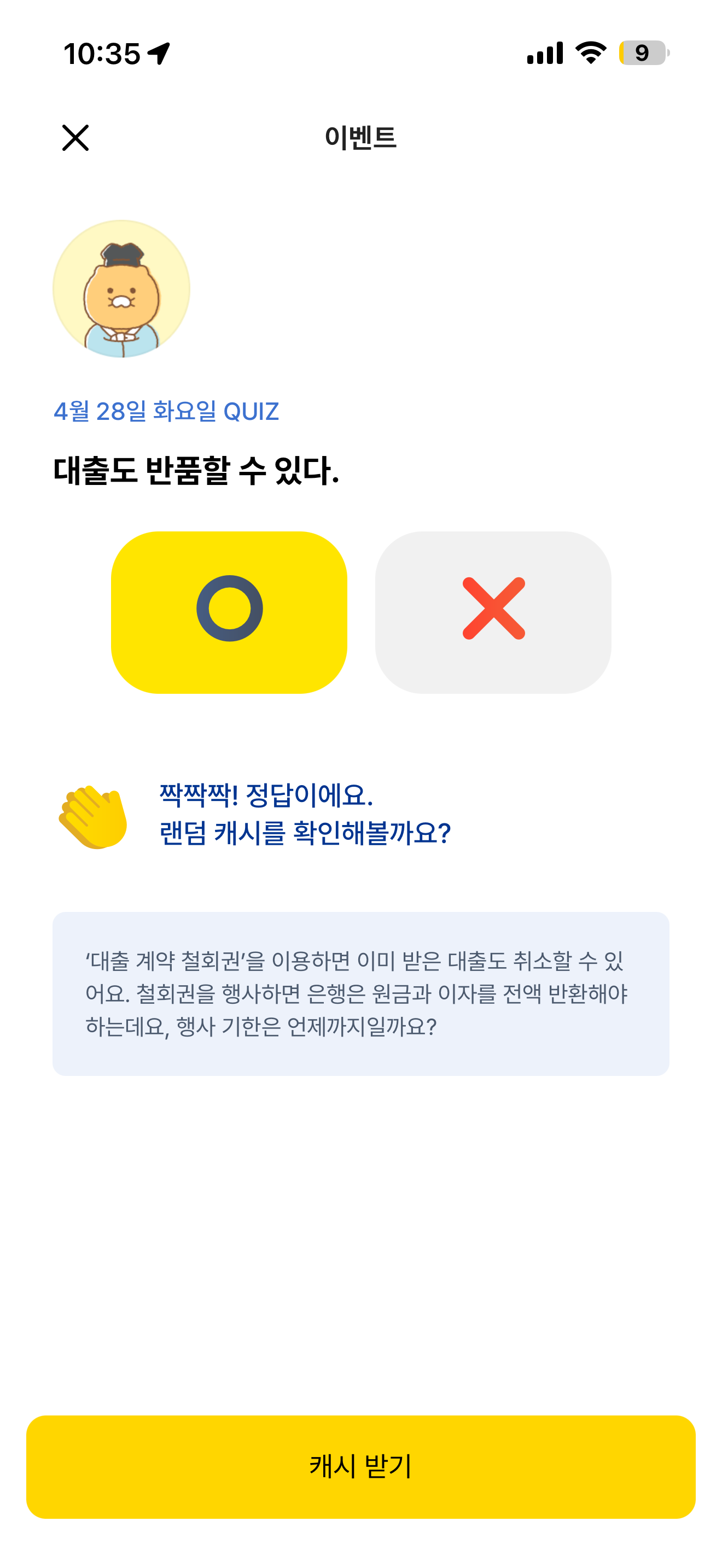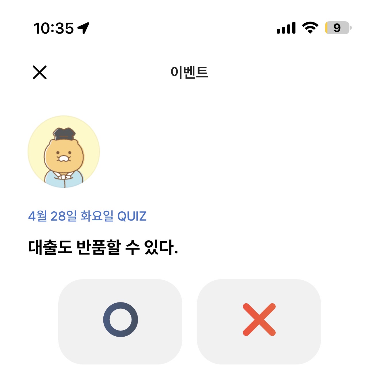 카카오뱅크 OX 퀴즈 4월 28일 정답(대출도 반품할 수 있다)