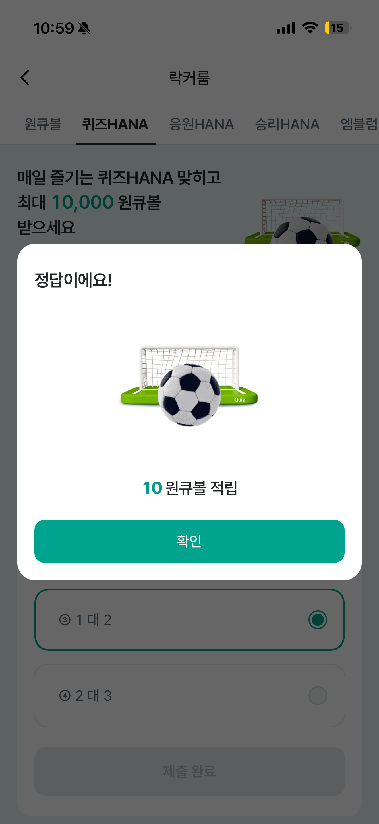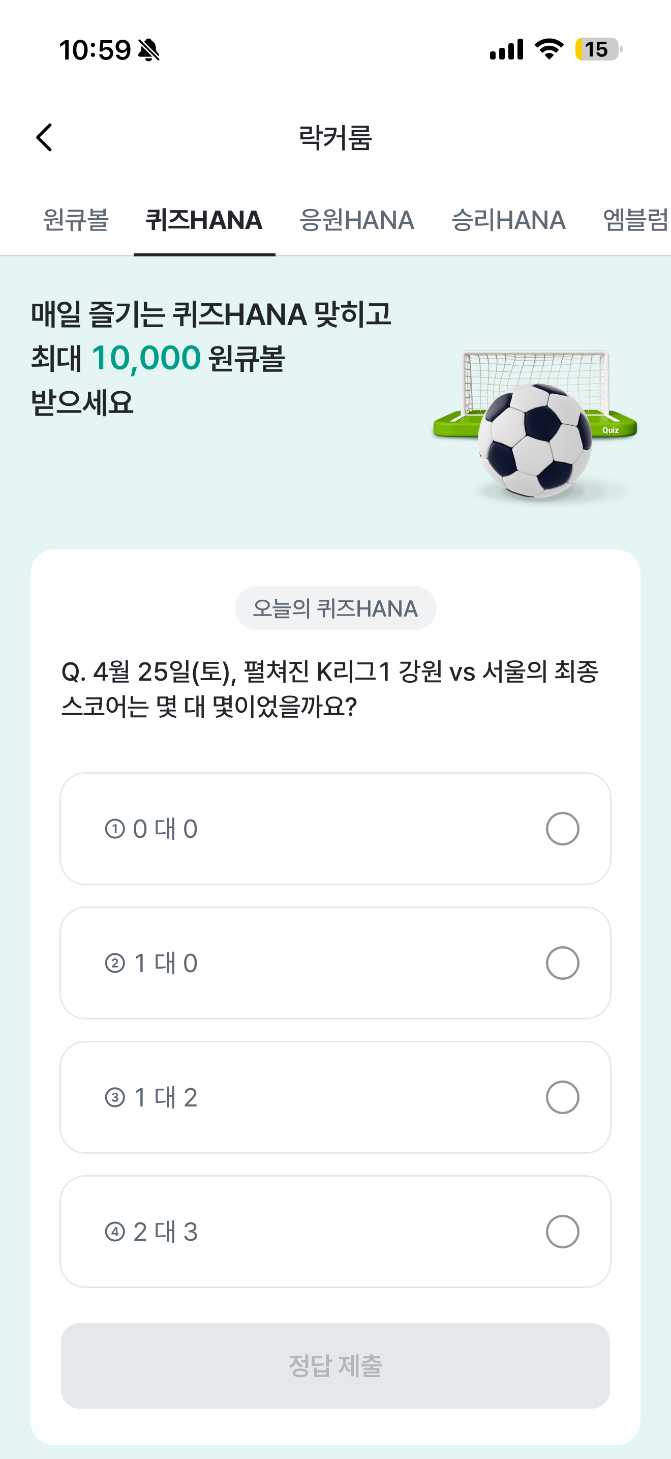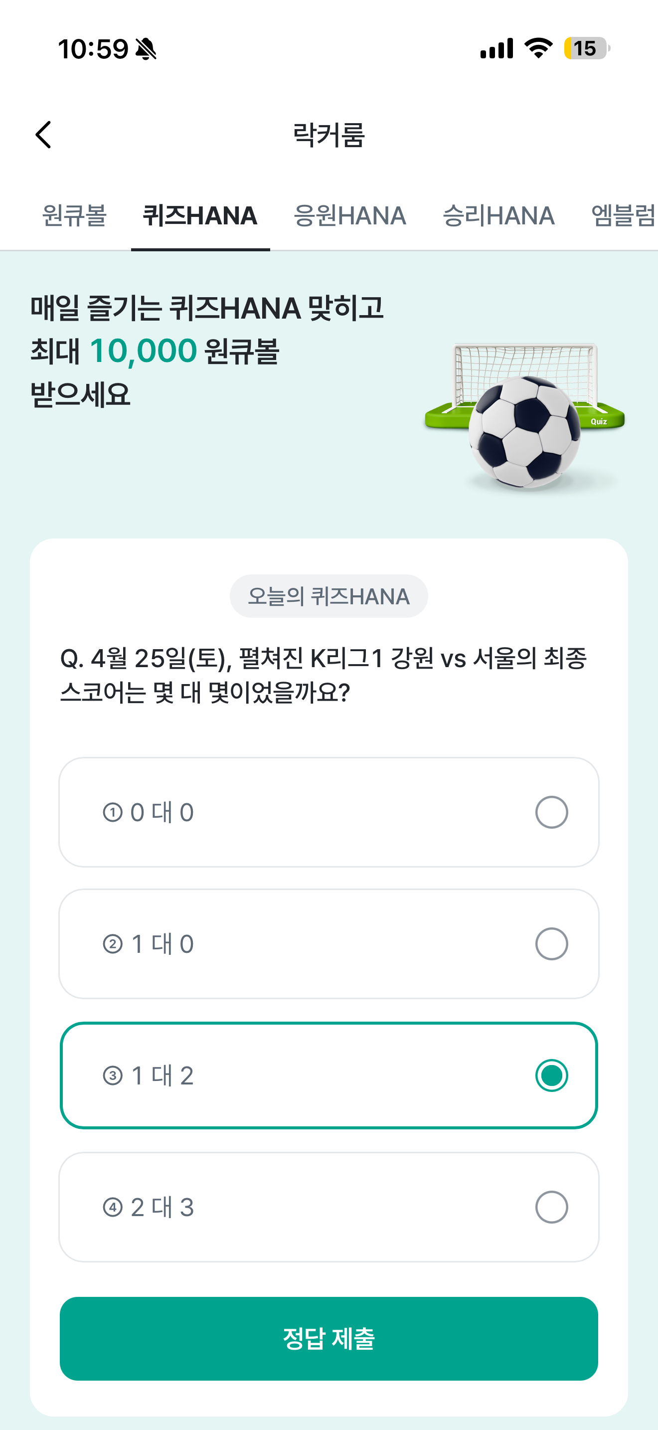 하나원큐 축구 play 퀴즈 HANA 정답은 1 대 2 입니다