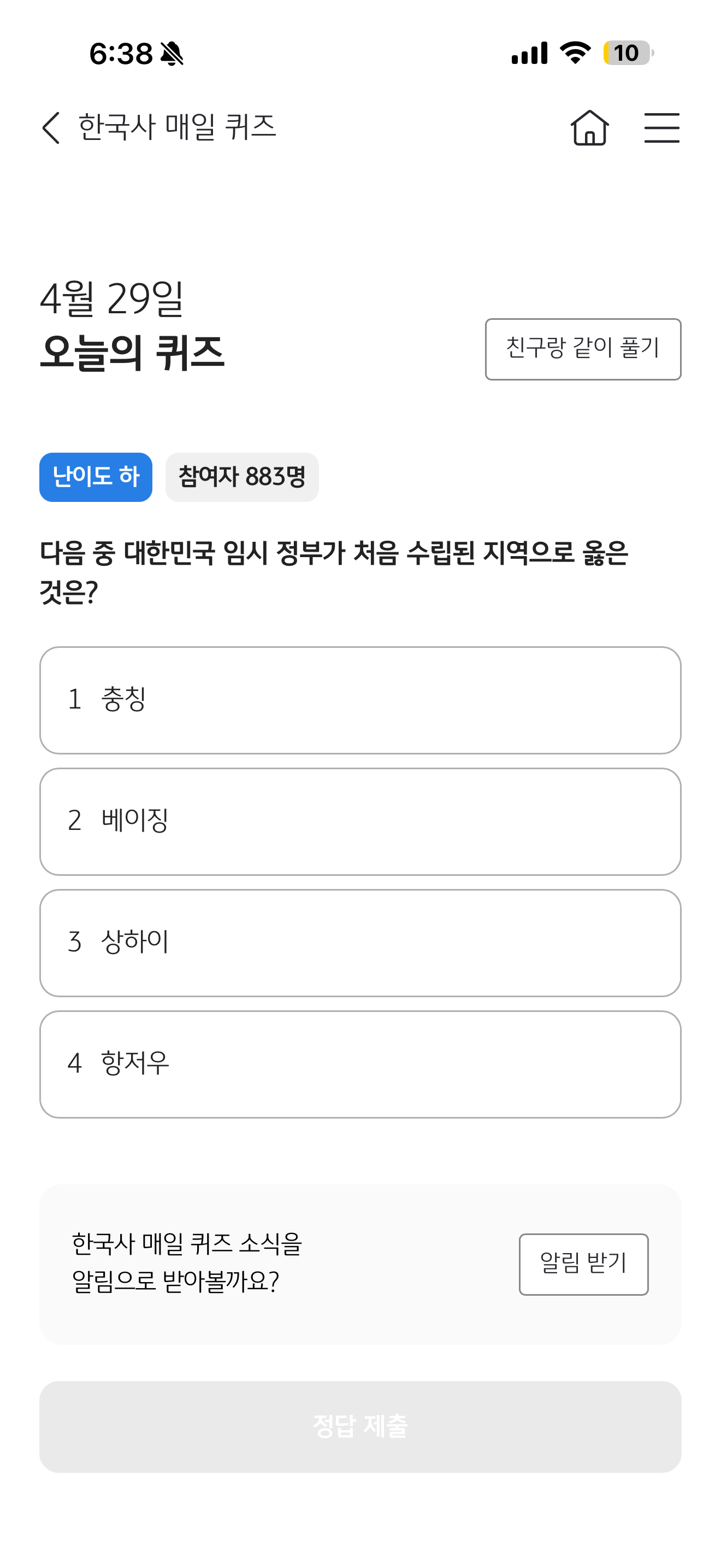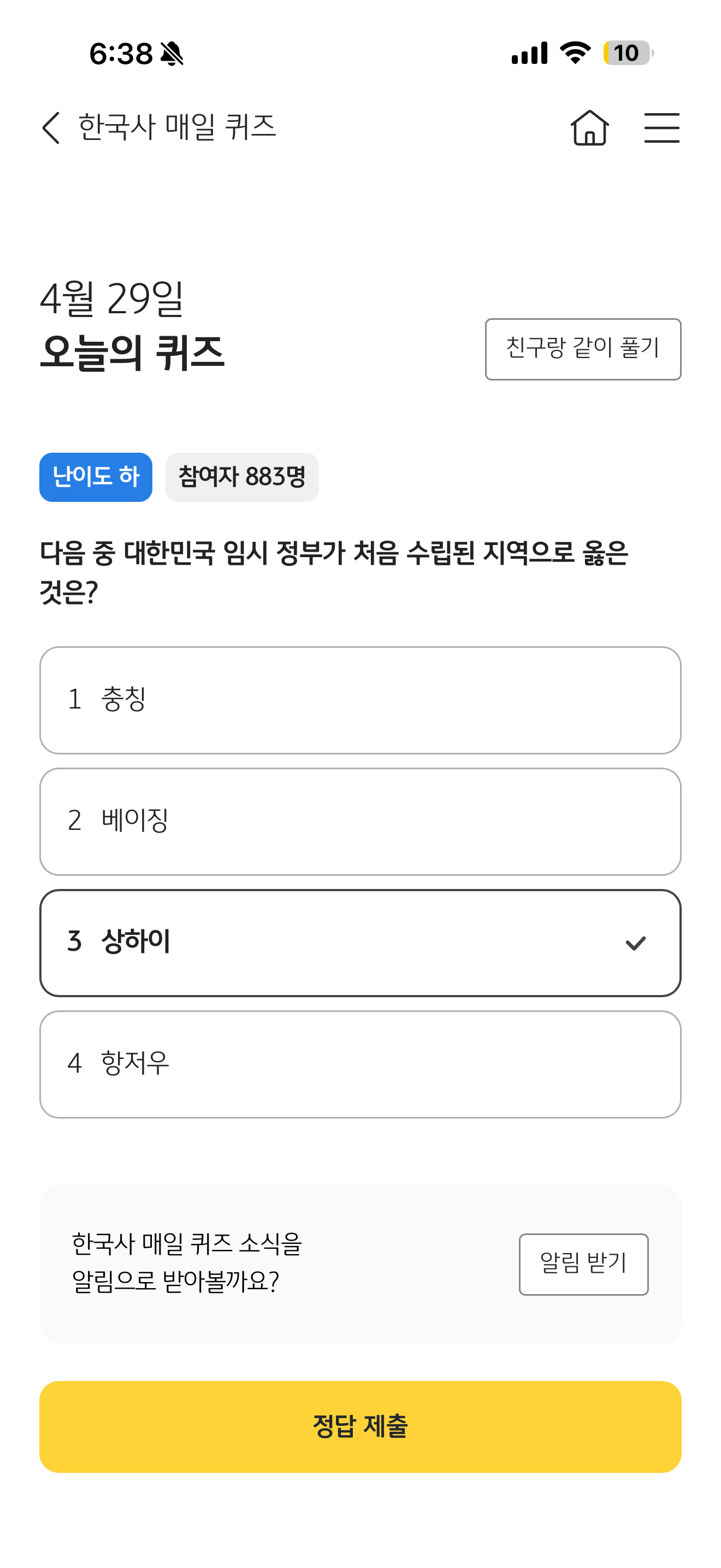 KB스타뱅킹 한국사 매일 퀴즈 정답은 상하이 입니다