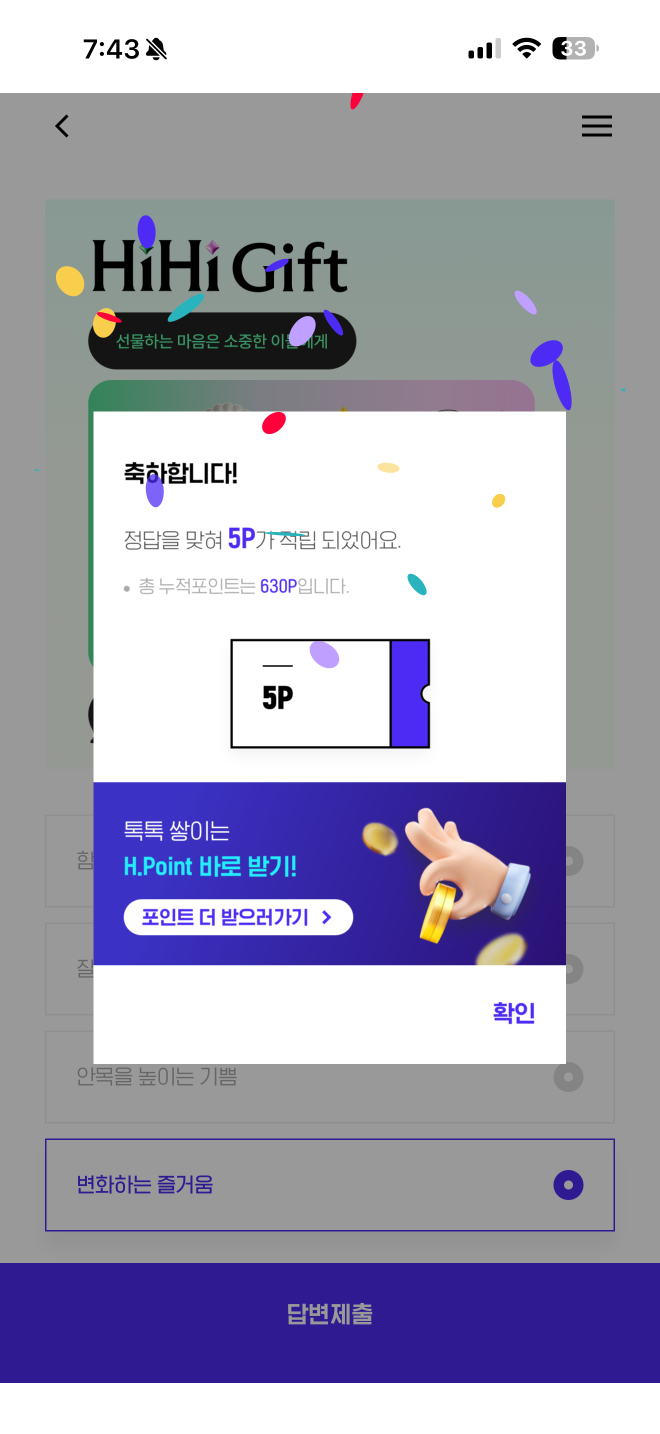 H포인트 퀴즈 정답은 변화하는 즐거움 입니다