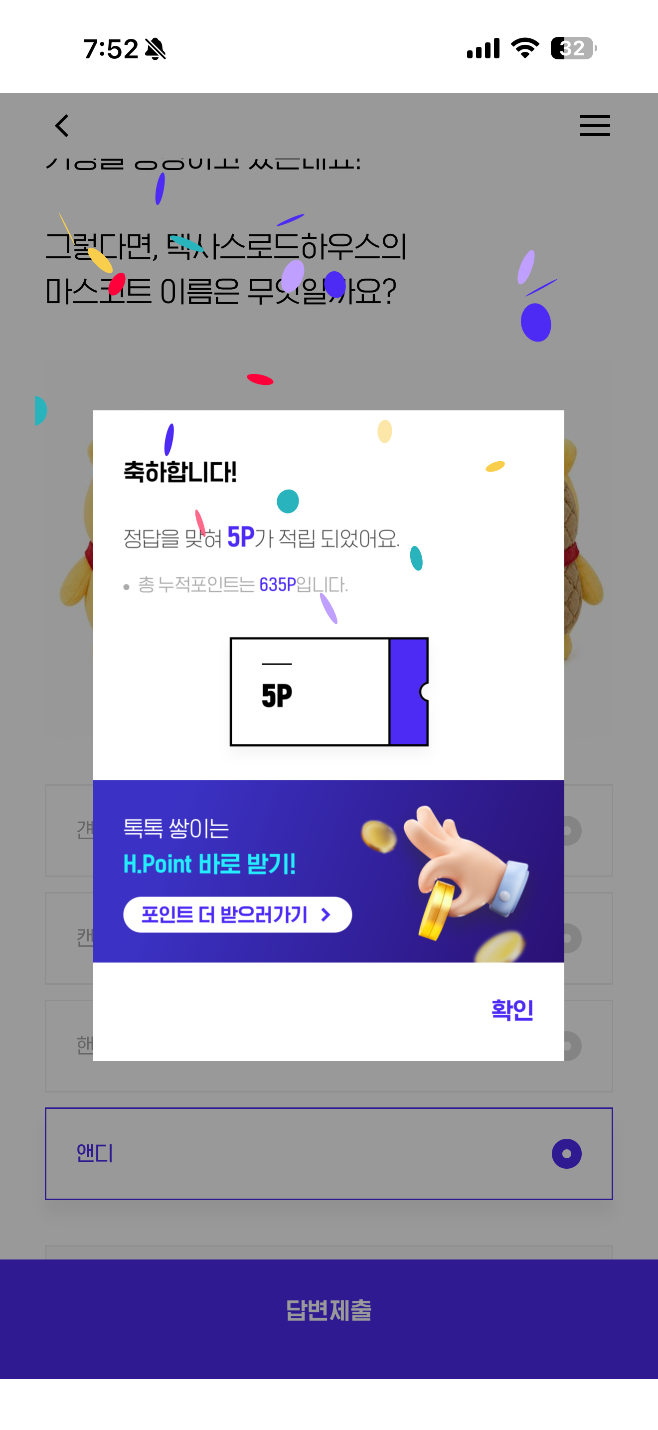 H포인트 퀴즈 정답은 앤디 입니다