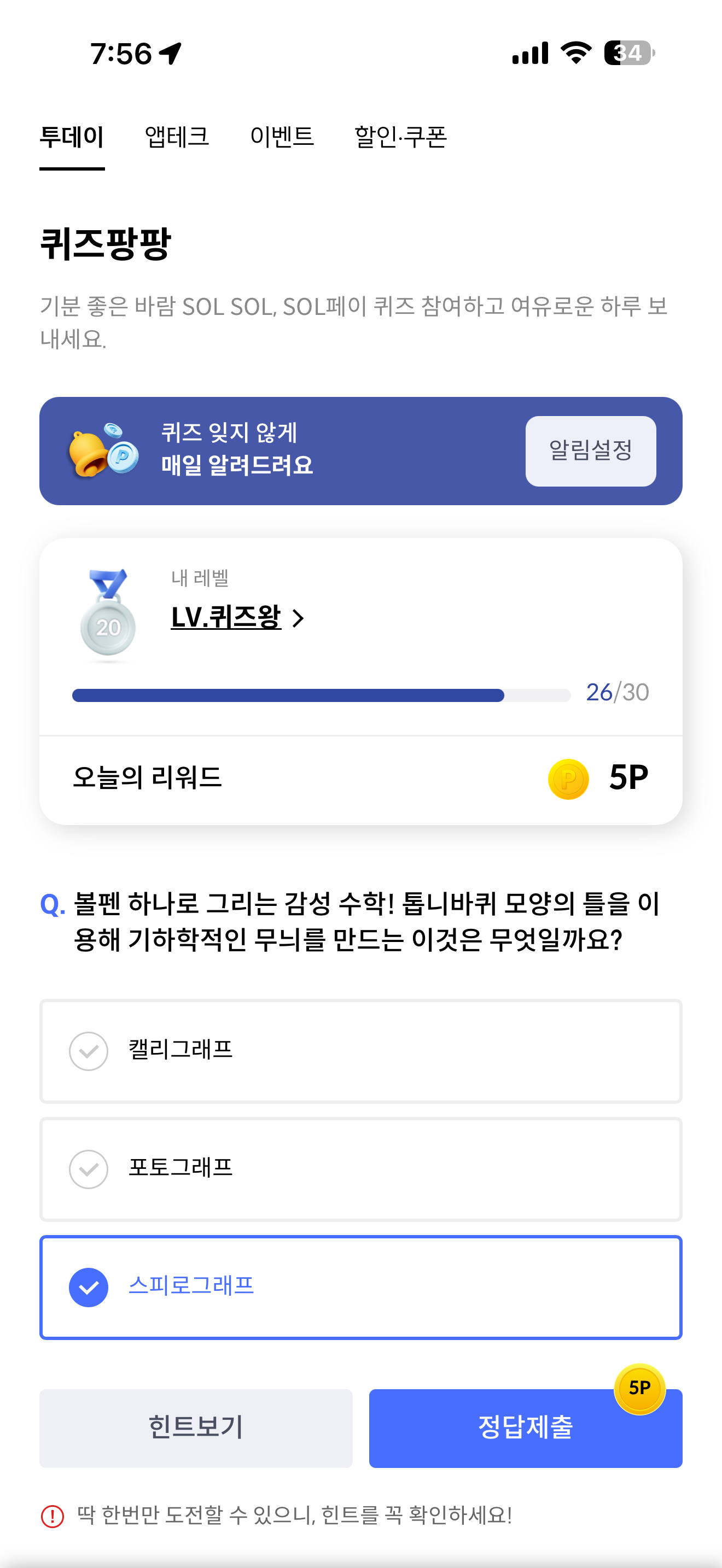 신한카드 퀴즈팡팡 정답은 스피로그래프 입니다