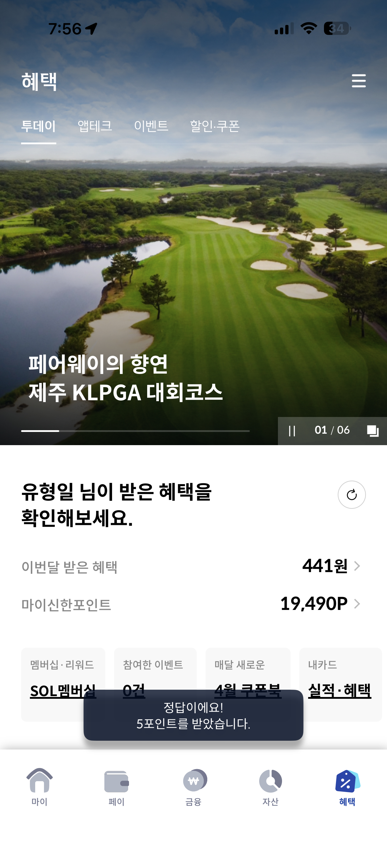 신한카드 퀴즈팡팡 4월 29일 문제입니다