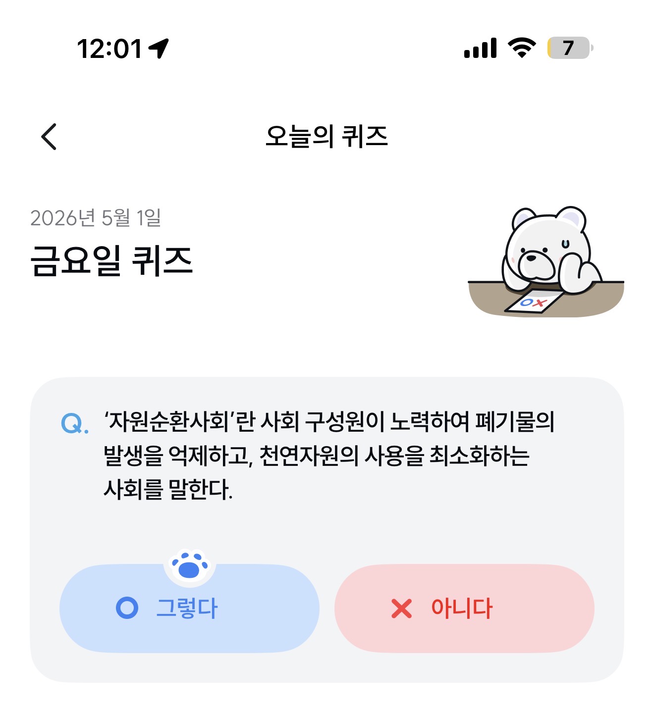 기후행동 기회소득 오늘의 퀴즈 정답은 그렇다 입니다
