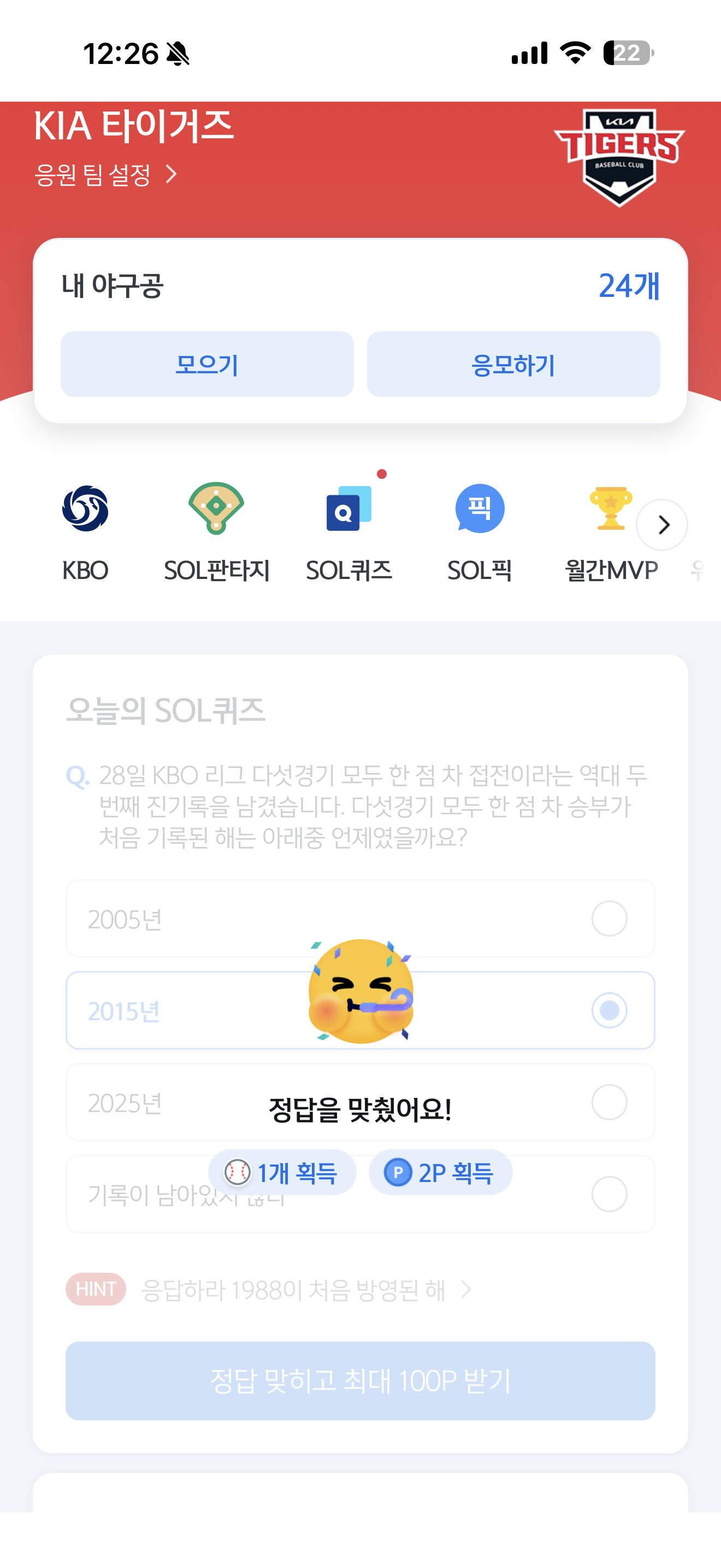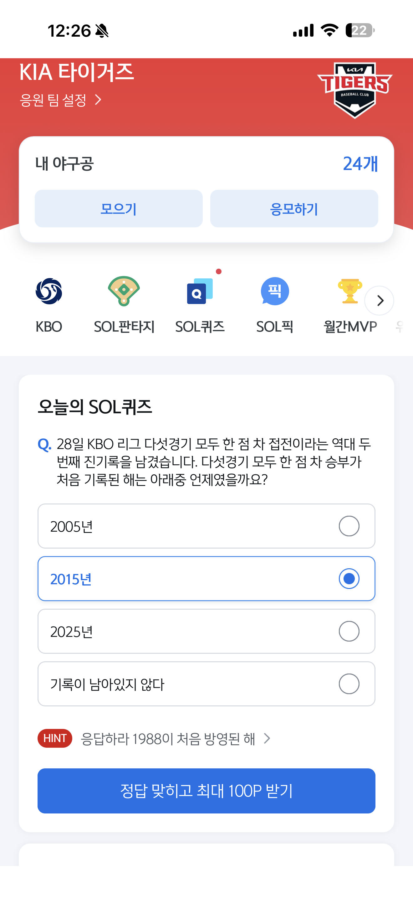 신한은행 SOL야구 쏠퀴즈 정답은 2015년 입니다