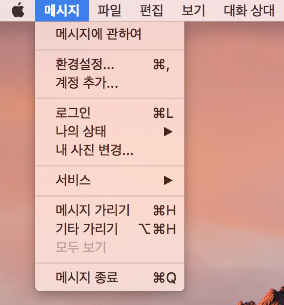 메시지 어플의 메뉴를 누르면 환경설정 메뉴가 있습니다.