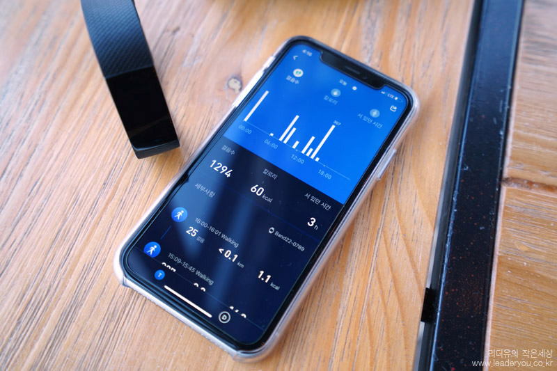 띵스 스마트밴드3는 기본적으로 걸음수 체크도 실시간으로 해주고