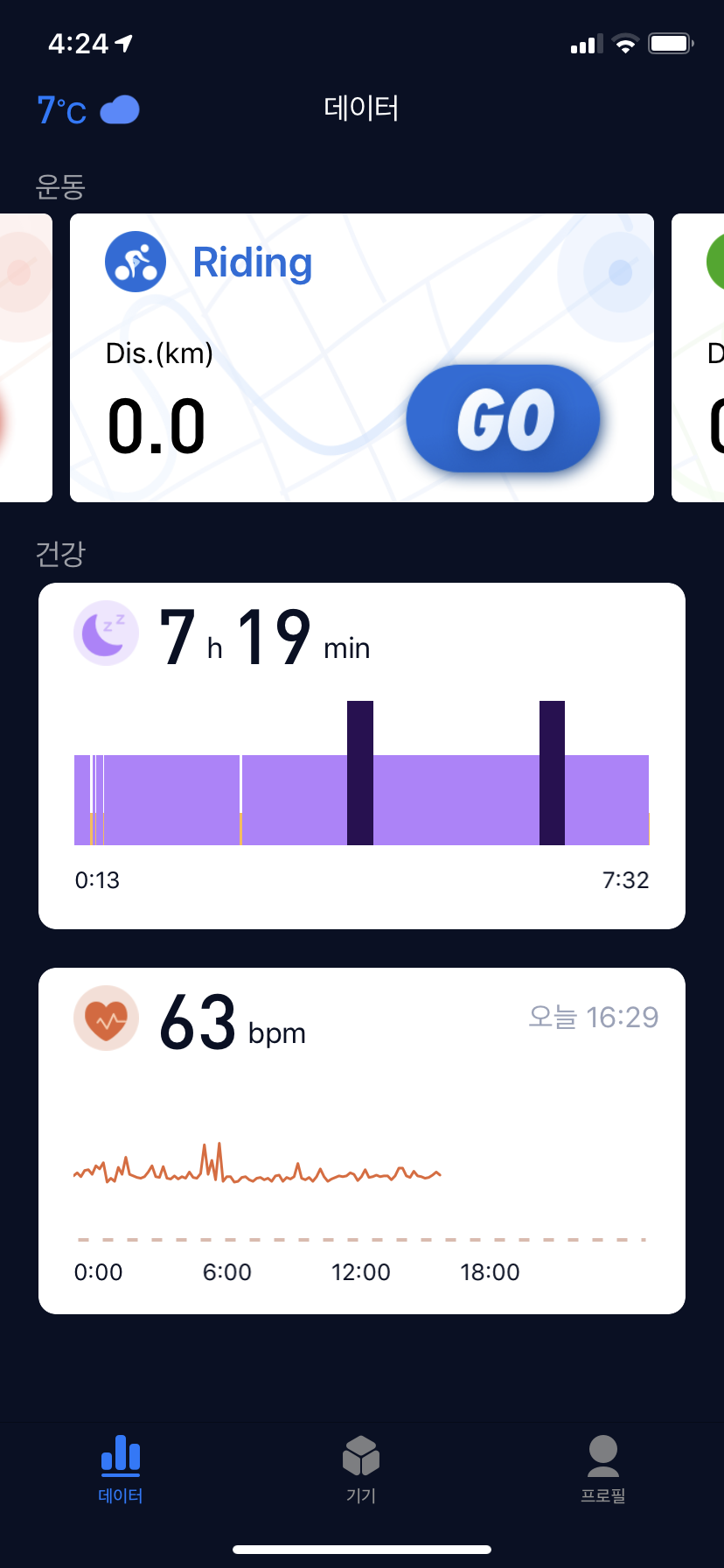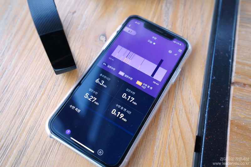 수면 상태도 아주 정교하게 체크를 해줍니다. 몇시간 잤는지, 깊은 수면, 얕은 수면, 수면 중 깬 시간까지 항목별로 확인할 수 있습니다.
