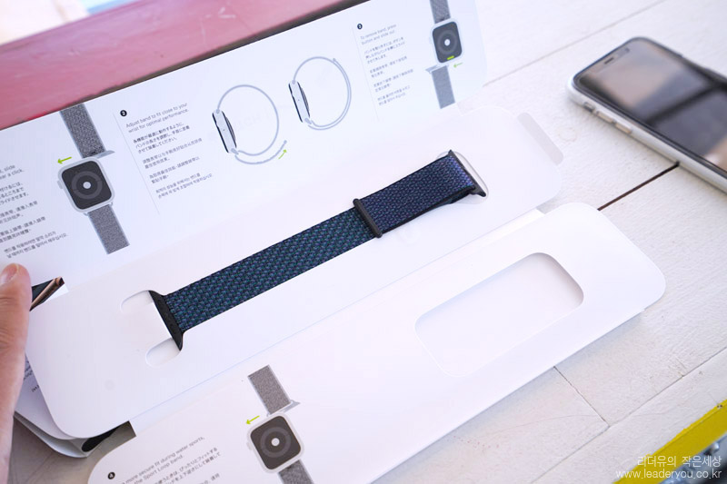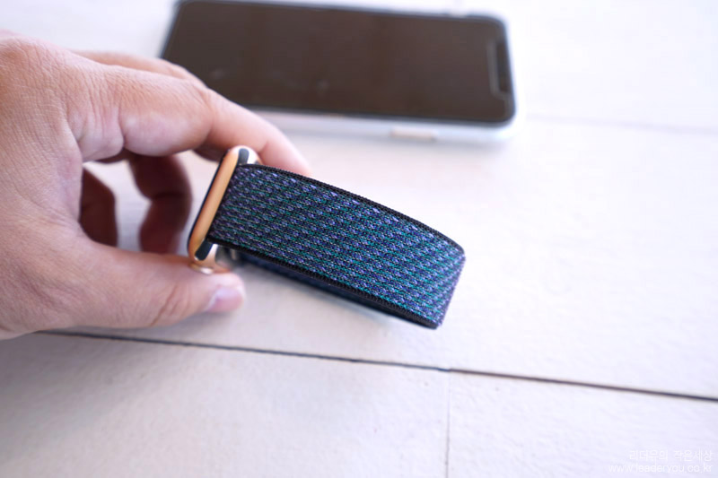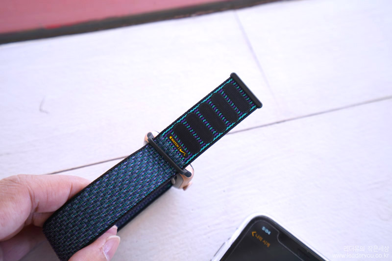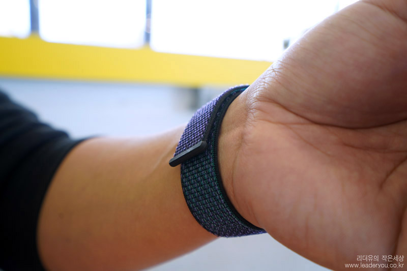 스포츠 루프 밴드 착용은 손목을 넣고 길이를 조절해 부착하면 됩니다.