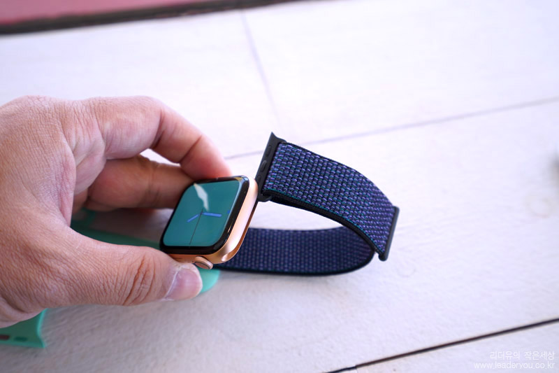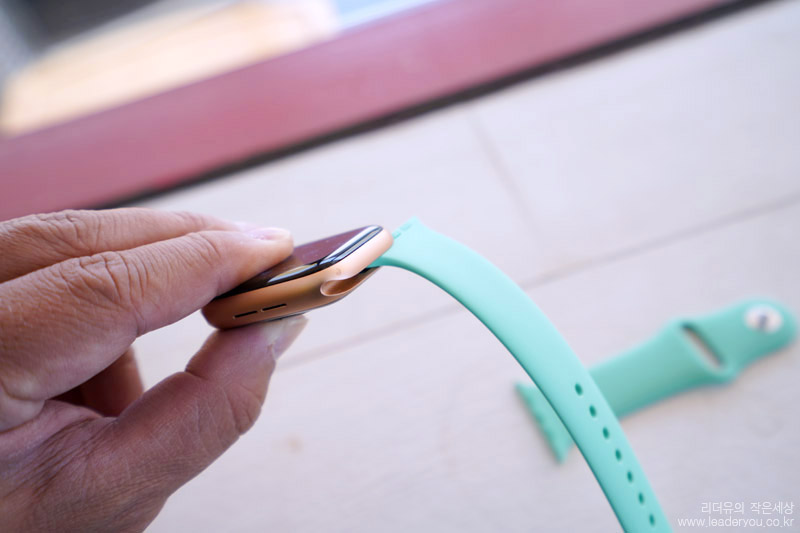 애플워치 밴드 분리와 장착은 그 어떤 스마트워치보다 편하고 쉽게 되어 있습니다. 슬라이드 방식으로 장착하는 구조라 밴드교환이 빠르고 안정된 사용을 할 수 있습니다.