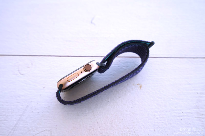 애플워치4와 하이퍼 그레이프 나이키 플러스 스포츠 루프 밴드 조합도 매력적이죠? 은은한 컬러 조합이 애플워치4를 더욱 돋보이게 만들어줍니다.