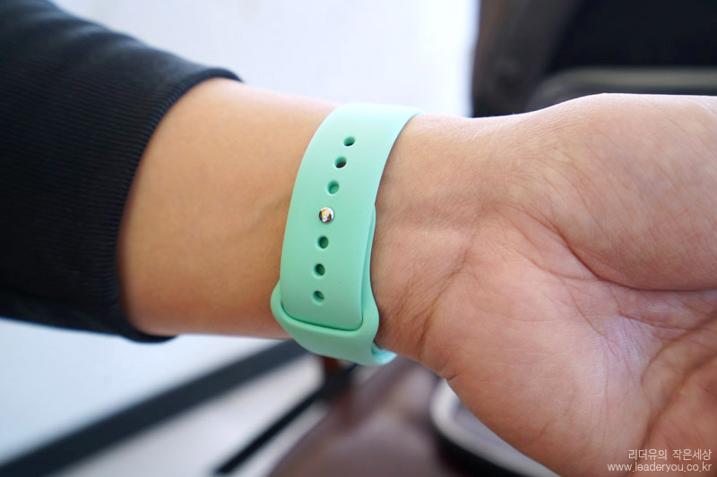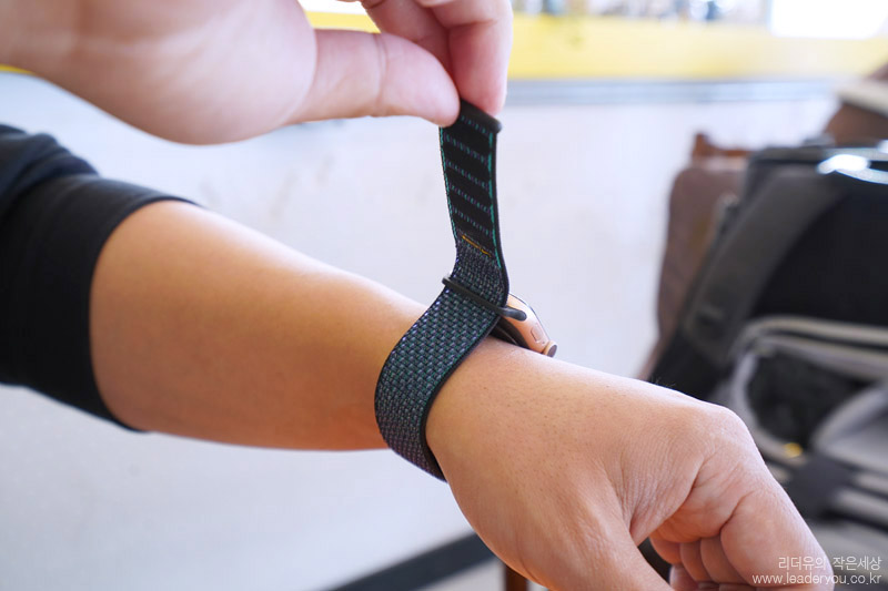 스포츠 루프 밴드 착용은 손목을 넣고 길이를 조절해 부착하면 됩니다.