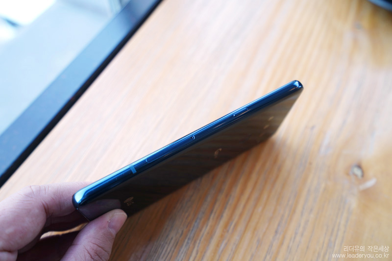 오른쪽면에는 전원/홀드 버튼과 유심/MIcro SD 트레이가 있습니다.