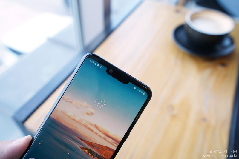 LG G8 전면 모습입니다. 6.1인치 OLED 디스플레이로 선명하고 화사한 디스플레이를 볼 수 있습니다. 해상도는 3120 x 1440 입니다