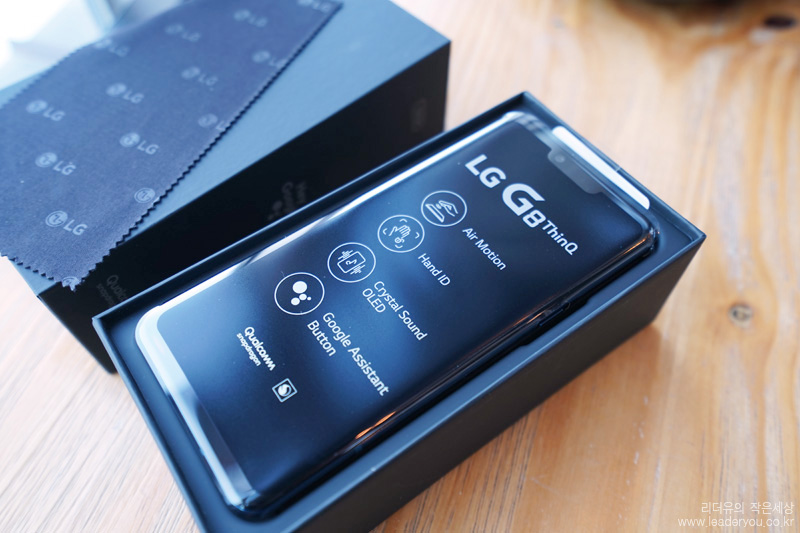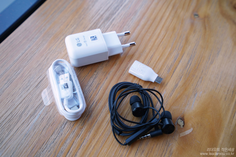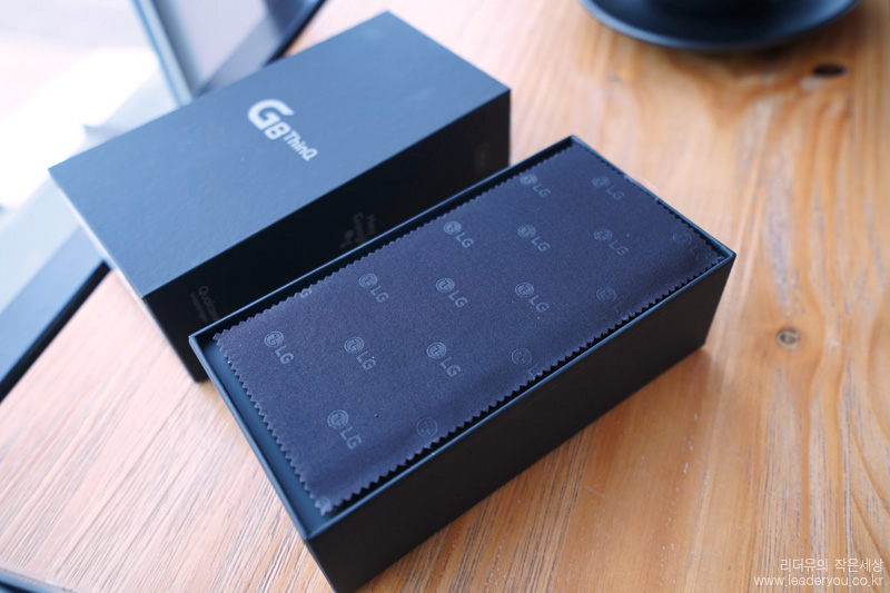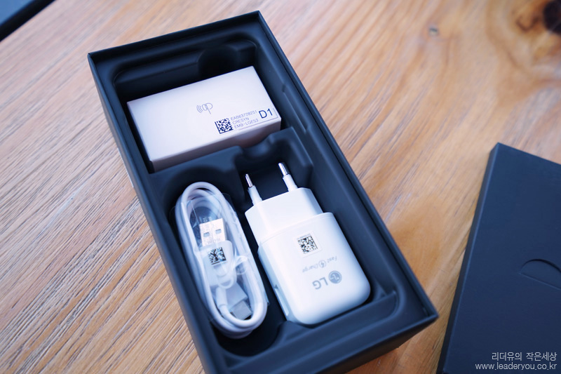 패키지를 오픈하면 융이 들어 있습니다. LG 스마트폰만의 차별화된 구성품입니다.