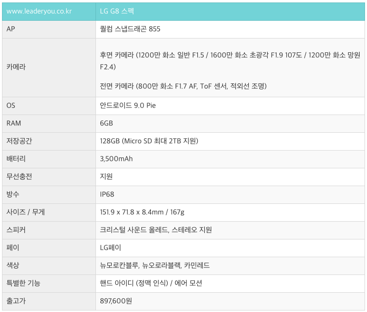 LG G8 스펙 좋아요!