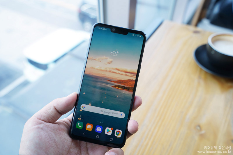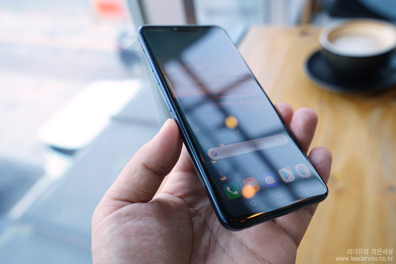 LG G8 전면 모습입니다. 6.1인치 OLED 디스플레이로 선명하고 화사한 디스플레이를 볼 수 있습니다. 해상도는 3120 x 1440 입니다