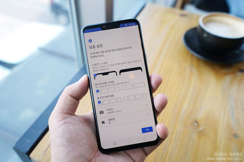LG G8은 초반에 사용자가 원하는대로 셋팅을 할 수 있도록 맞춤 설정을 제공합니다. 뉴세컨드 스크린을 안보이게 설정도 가능하고 홈터치 버튼 스타일, 키보드, 홈화면까지 많이 고민하는 설정을 처음에 제시해 선택할 수 있게 합니다.