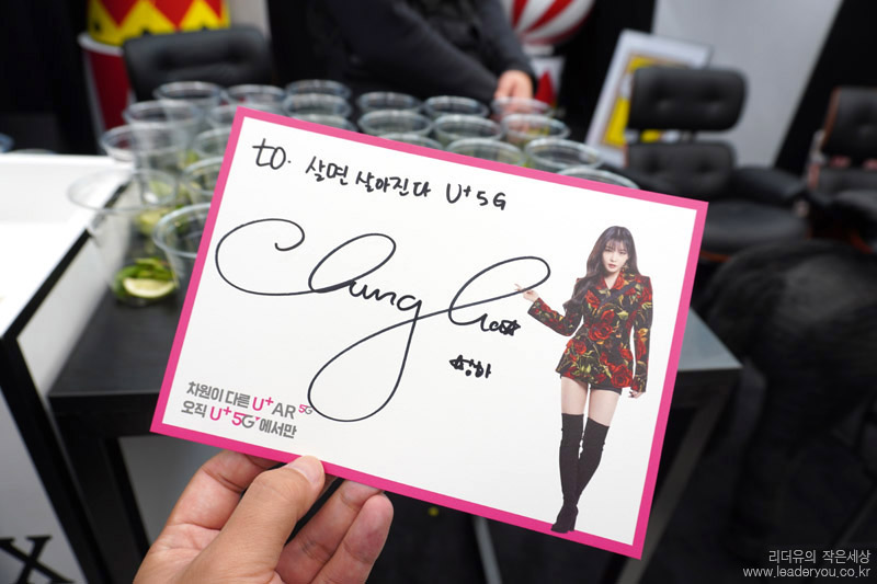 5G 유플런서 발대식에 참여한 모두에게 주어진 특별한 청하 사인! 입장시 번호를 받았고 받고 싶은 문구를 써서 주면